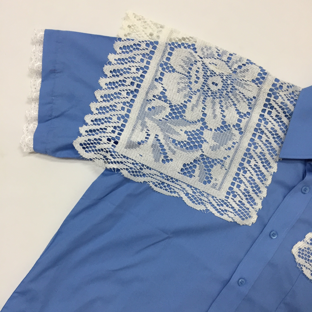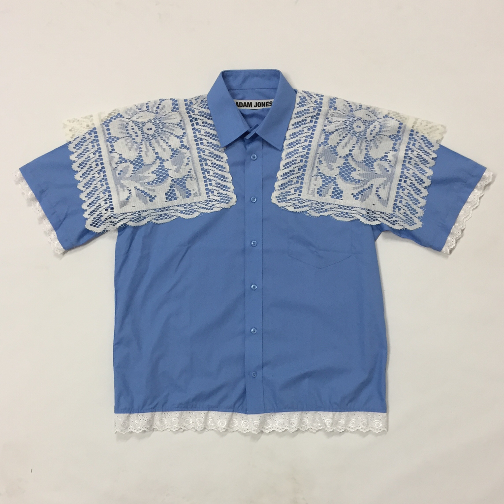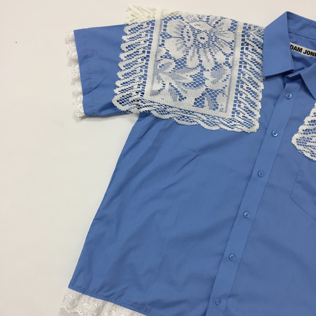 Blue Granny Lace Shoulder Short Sleeve Shirt by Adam Jones