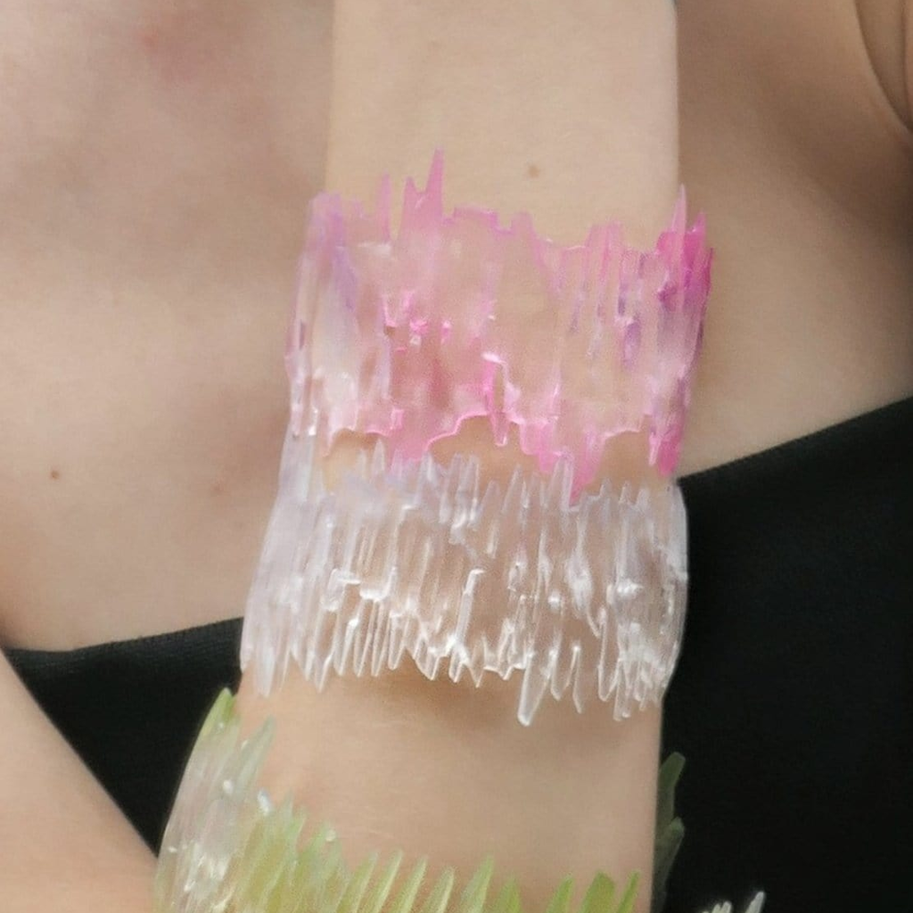 Pixel band by Bertie Garnett. This design combines the organic texture of crystals with digitally rendered pixels, fitting to the wrist or arm.