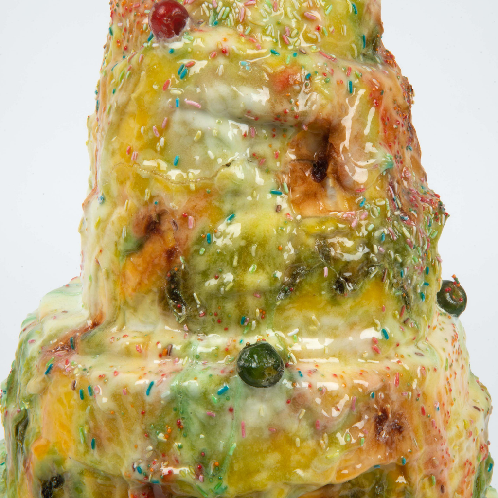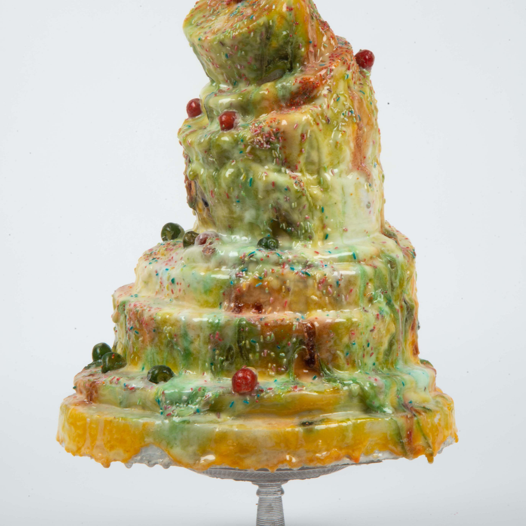 Material: Styrofoam, ceramic tile adhesive, icing sugar, colouring, gum balls, sugar sprinkles, Crystal clear UV resistant polyurethan resin
