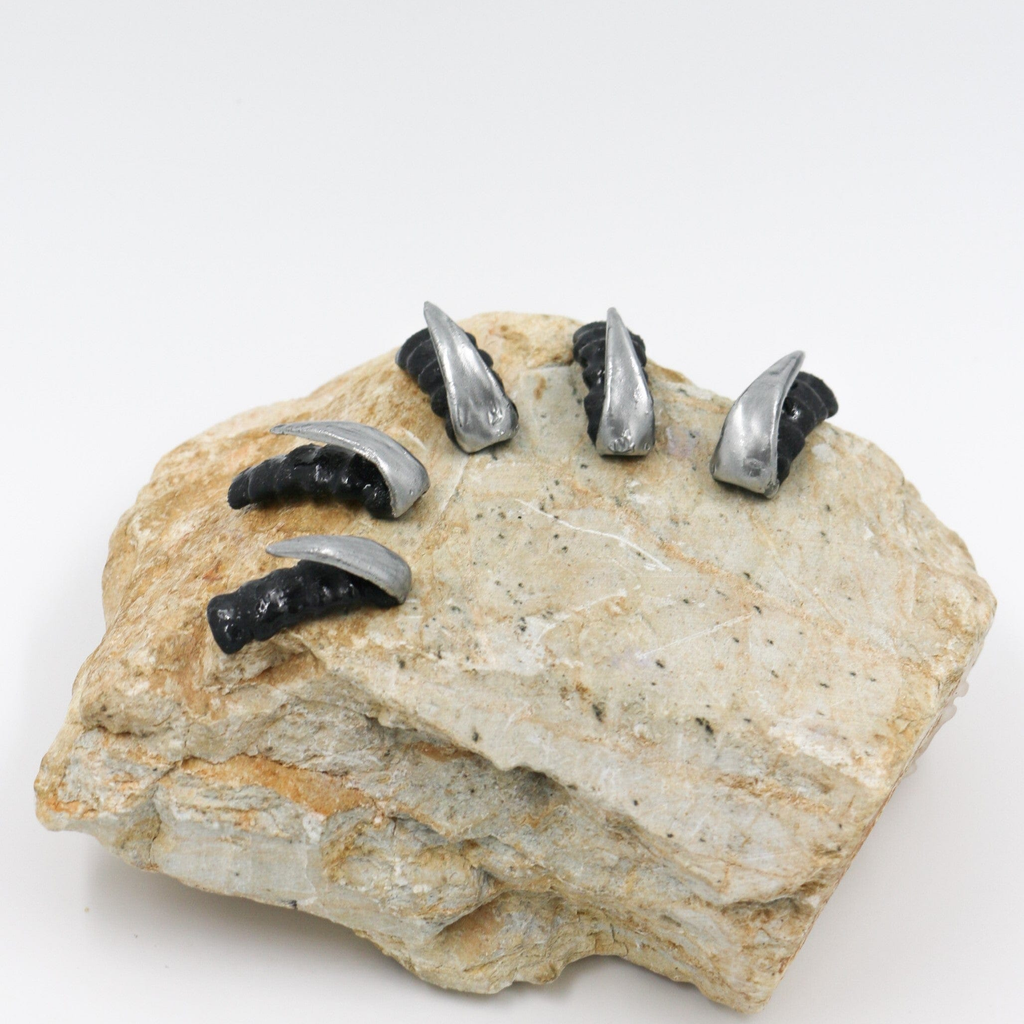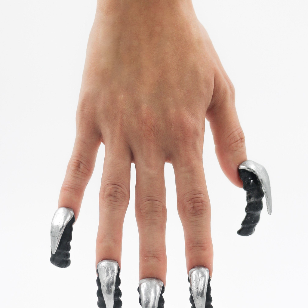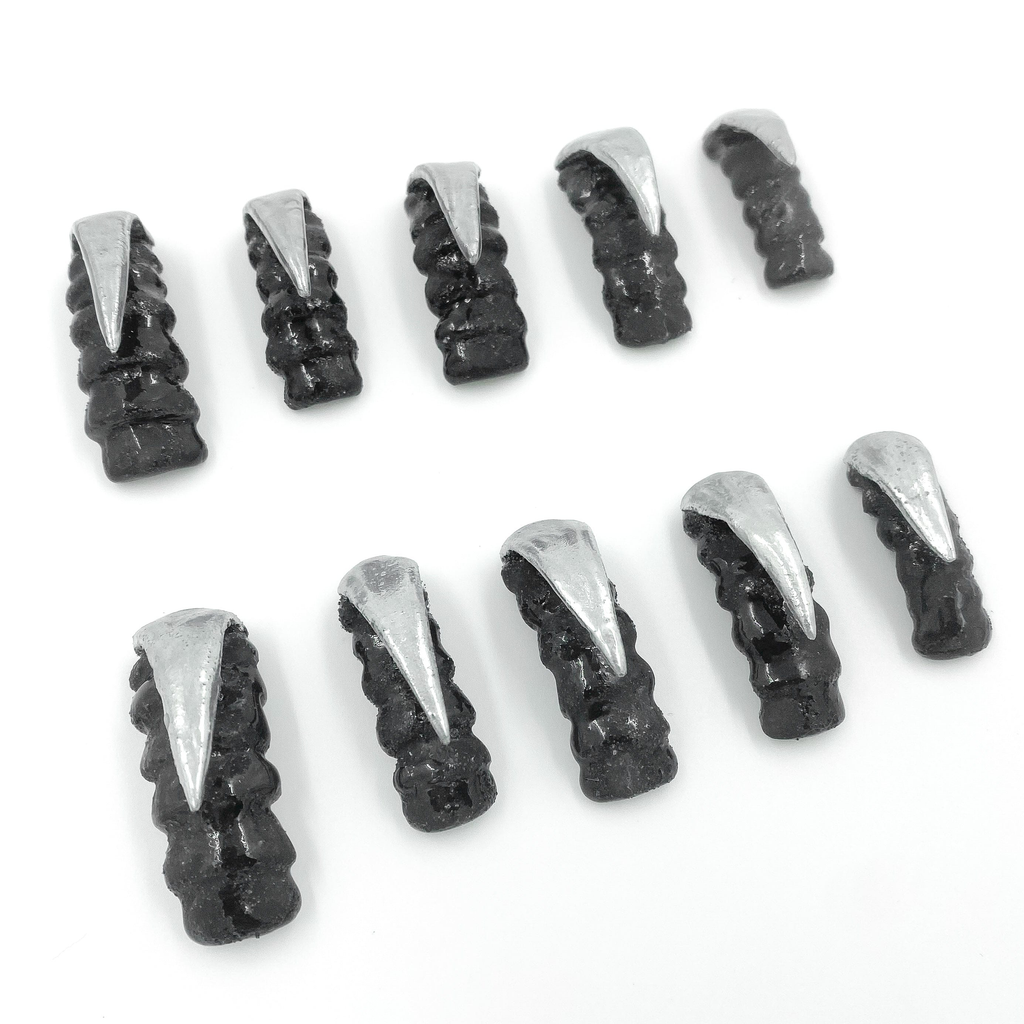 Textured nails with elevated and curved chrome tips. Includes 10 nails, a cuticle stick, a file, nail glue, and nail stickers. Made to order.