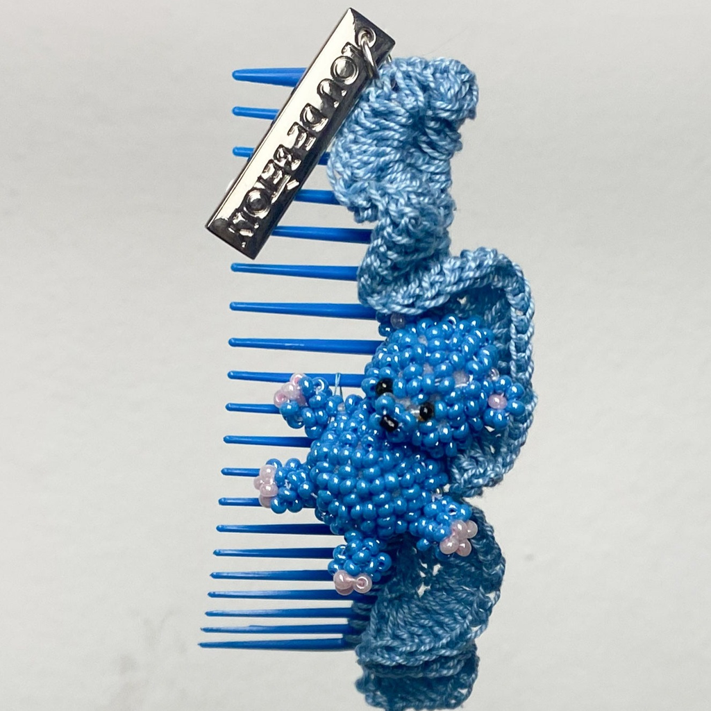 Materials: 10cm acrylic comb, beaded and crocheted figures