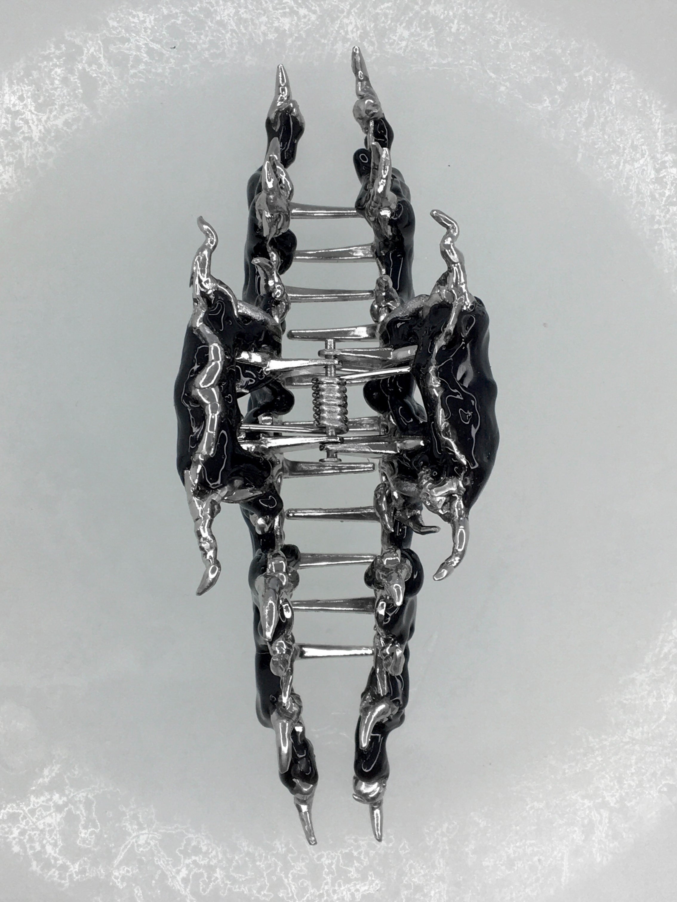 CASPER DIY reimagines the familiar through a futuristic lens, merging influences from sci-fi cinema, fantasy worlds, and underground style. His creations fuse mechanical, organic, and extraterrestrial elements to craft objects that feel both relic and prototype. Everyday items—glasses, flash drives, hair clips, or sneakers—become raw material for transformation.