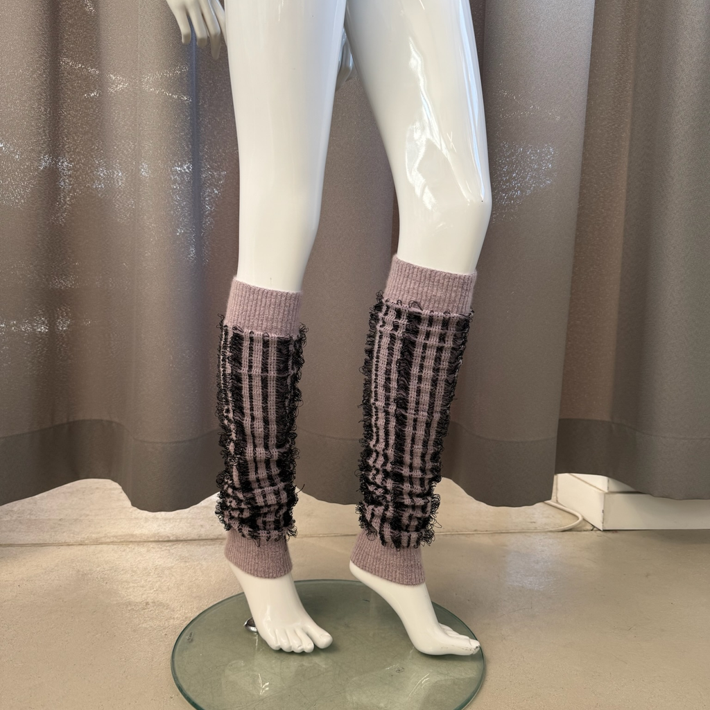 Long leg warmers in hairy structure with hole details on both sides and fine rib on ends