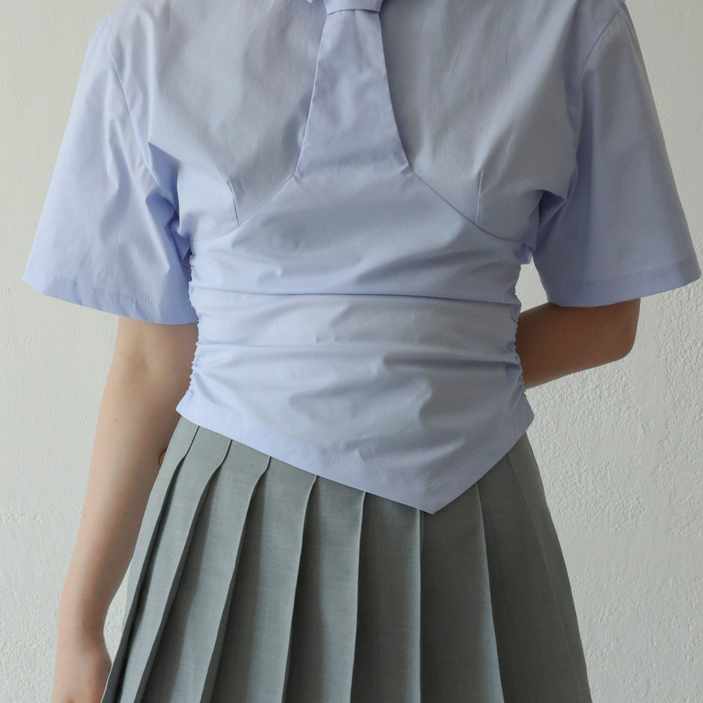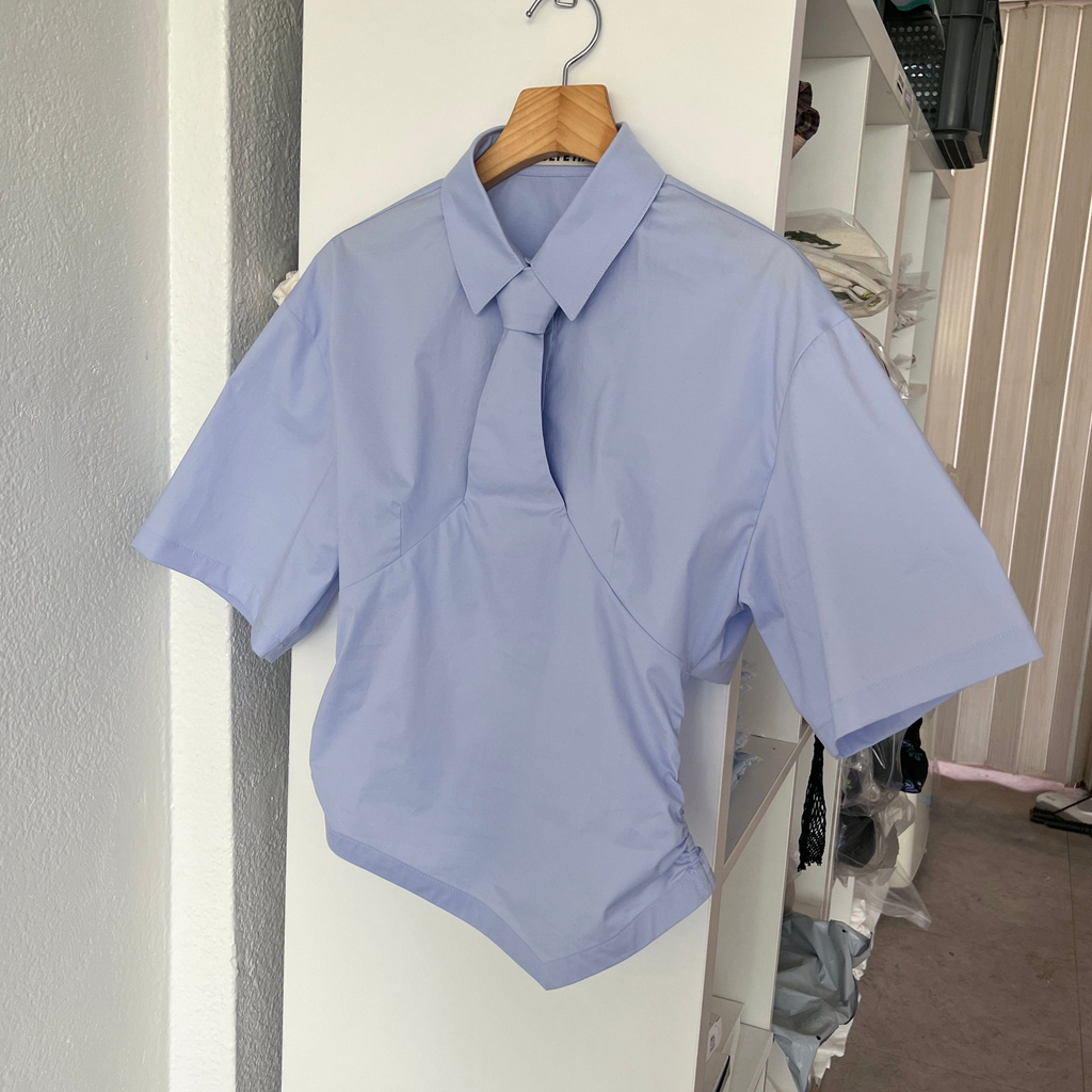 This is a short-sleeved shirt that combines a tie and a shirt.