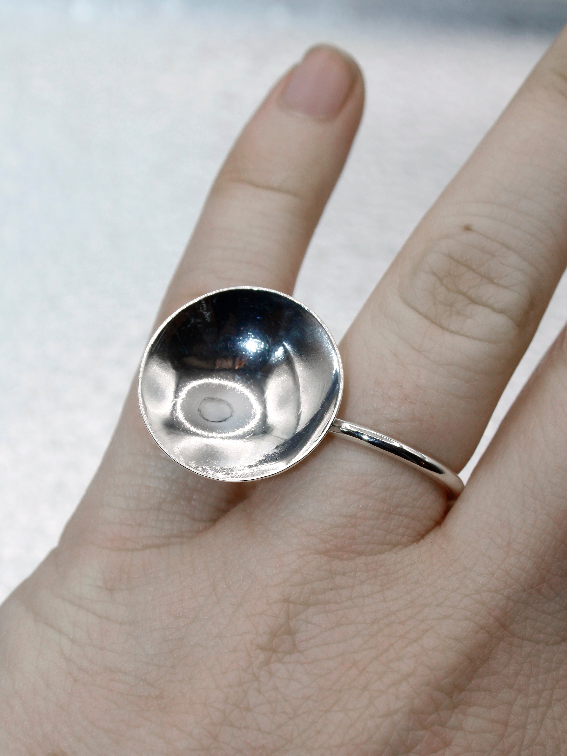 Recycled sterling silverHandmade halo ring crafted from recycled sterling silver, featuring large reflective silver halo for a bold, sculptural look.