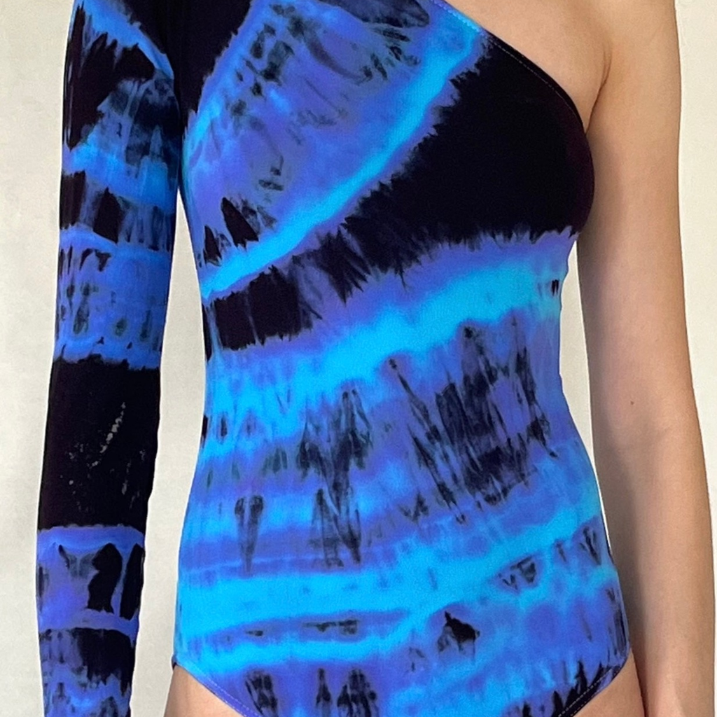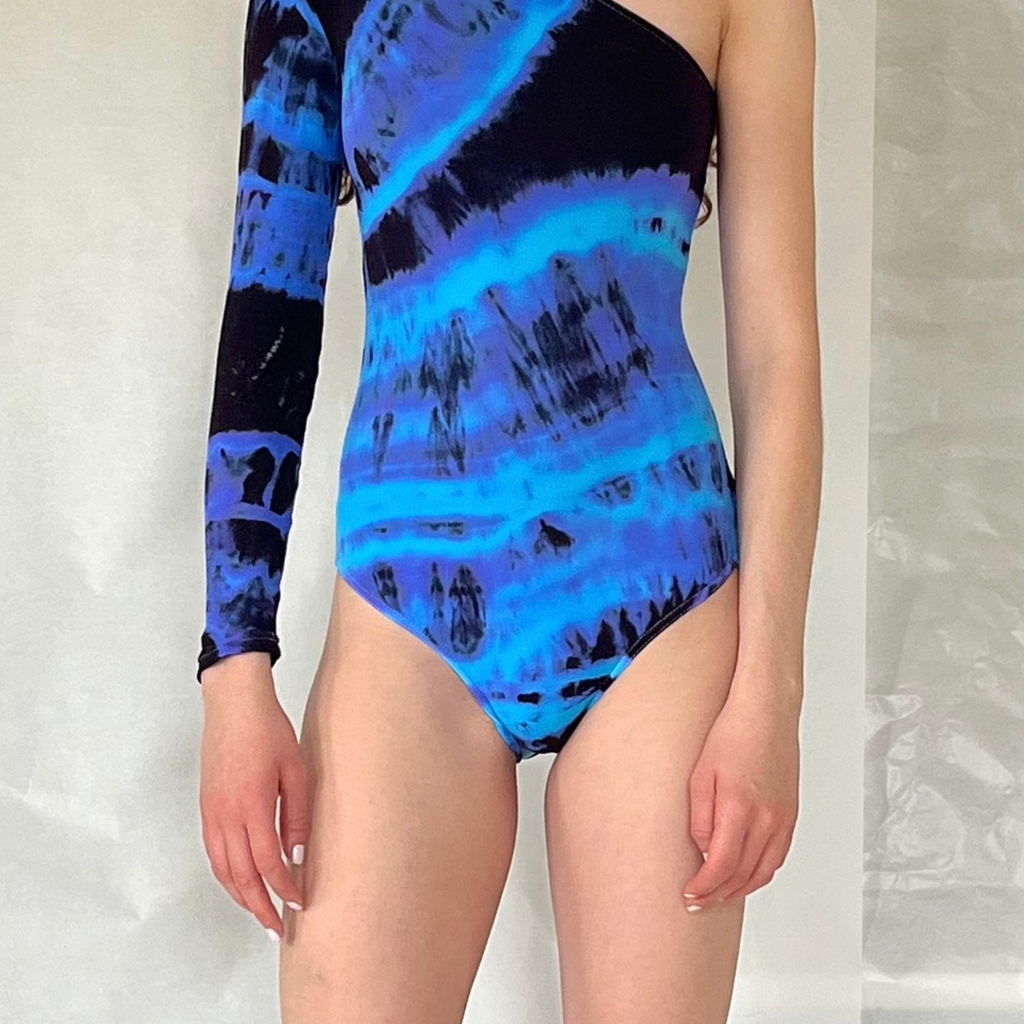 Blue Multicolour Hand Dyed Bodysuit by Celia Calderón Asensio