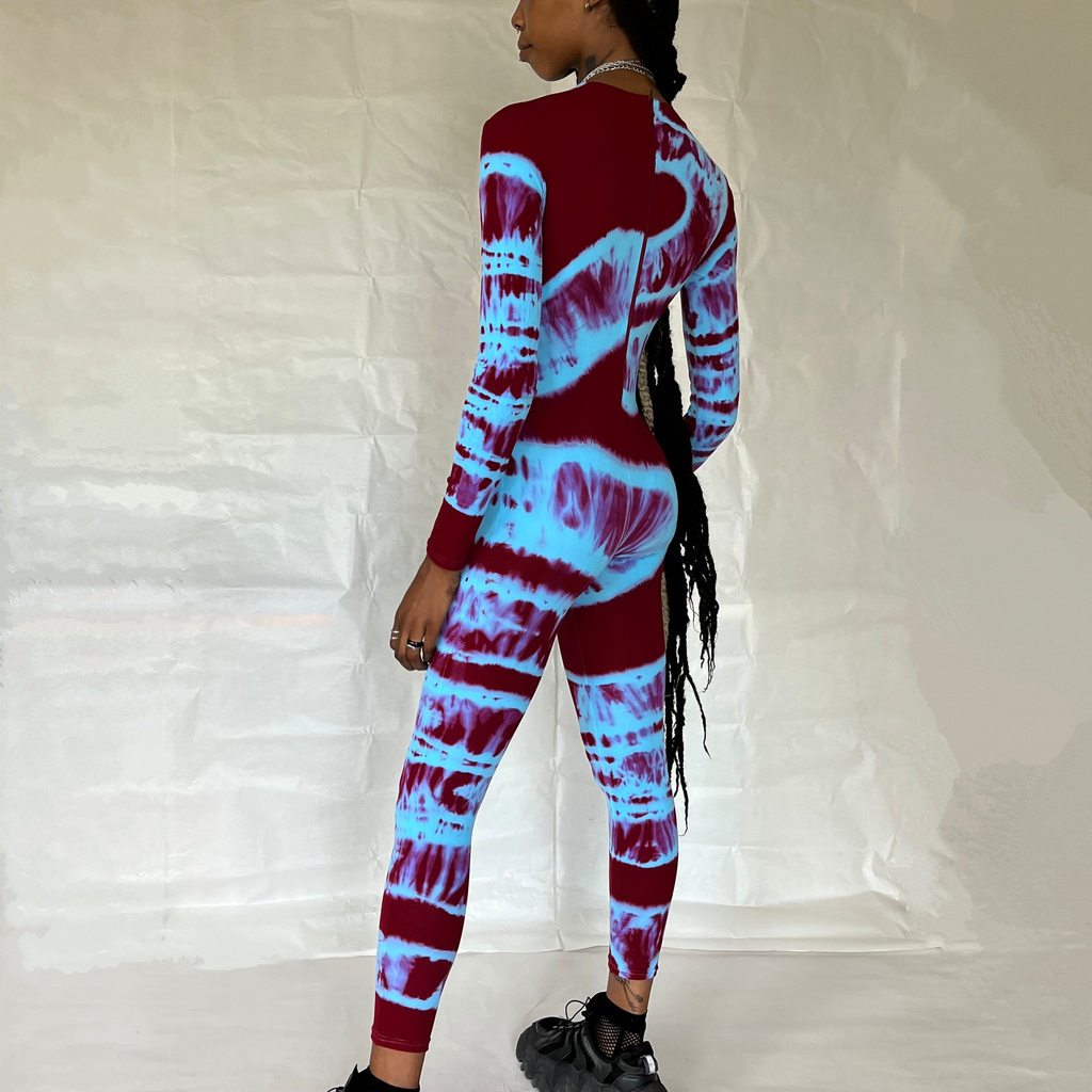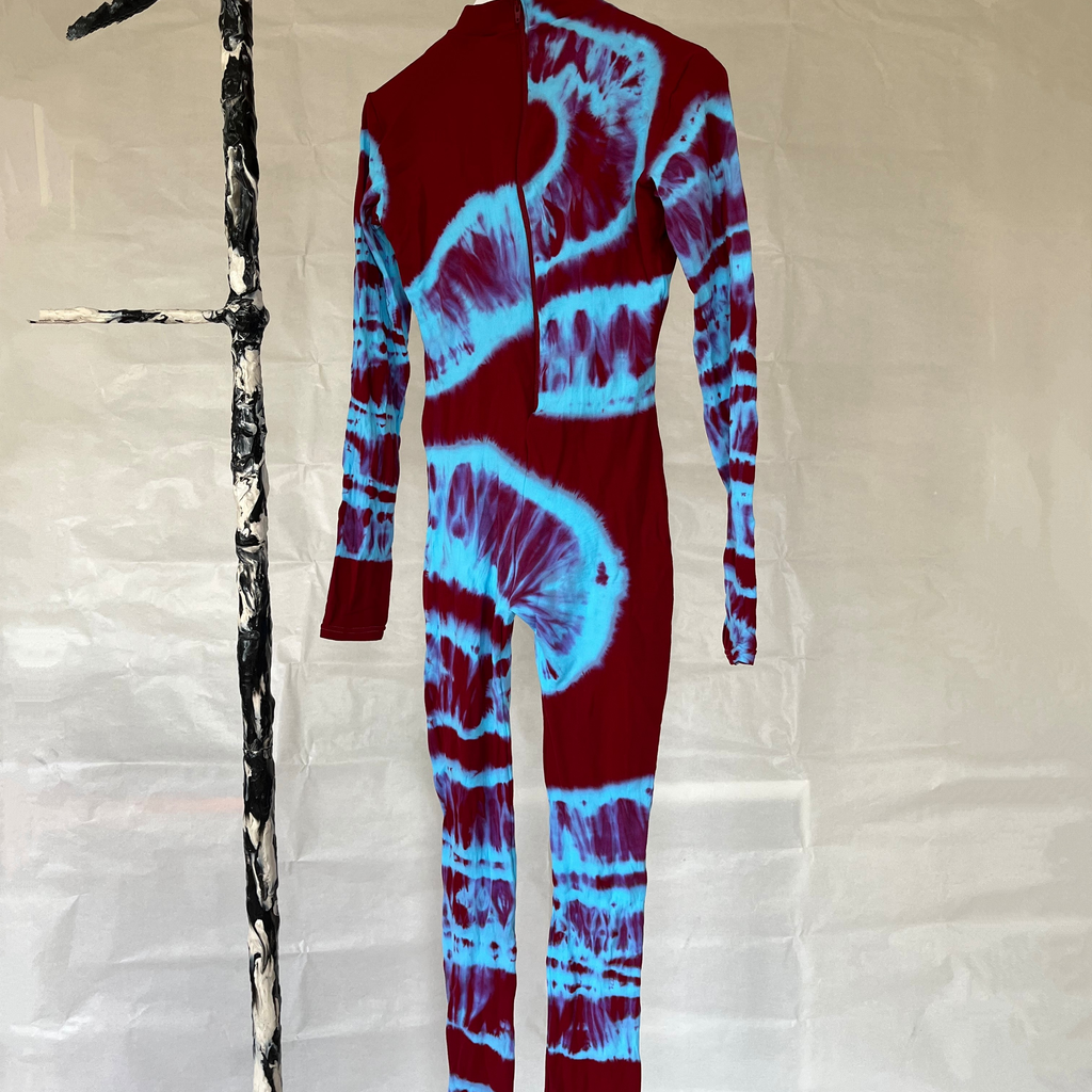 Red & Blue Hand Dyed Catsuit by Celia Calderón Asensio