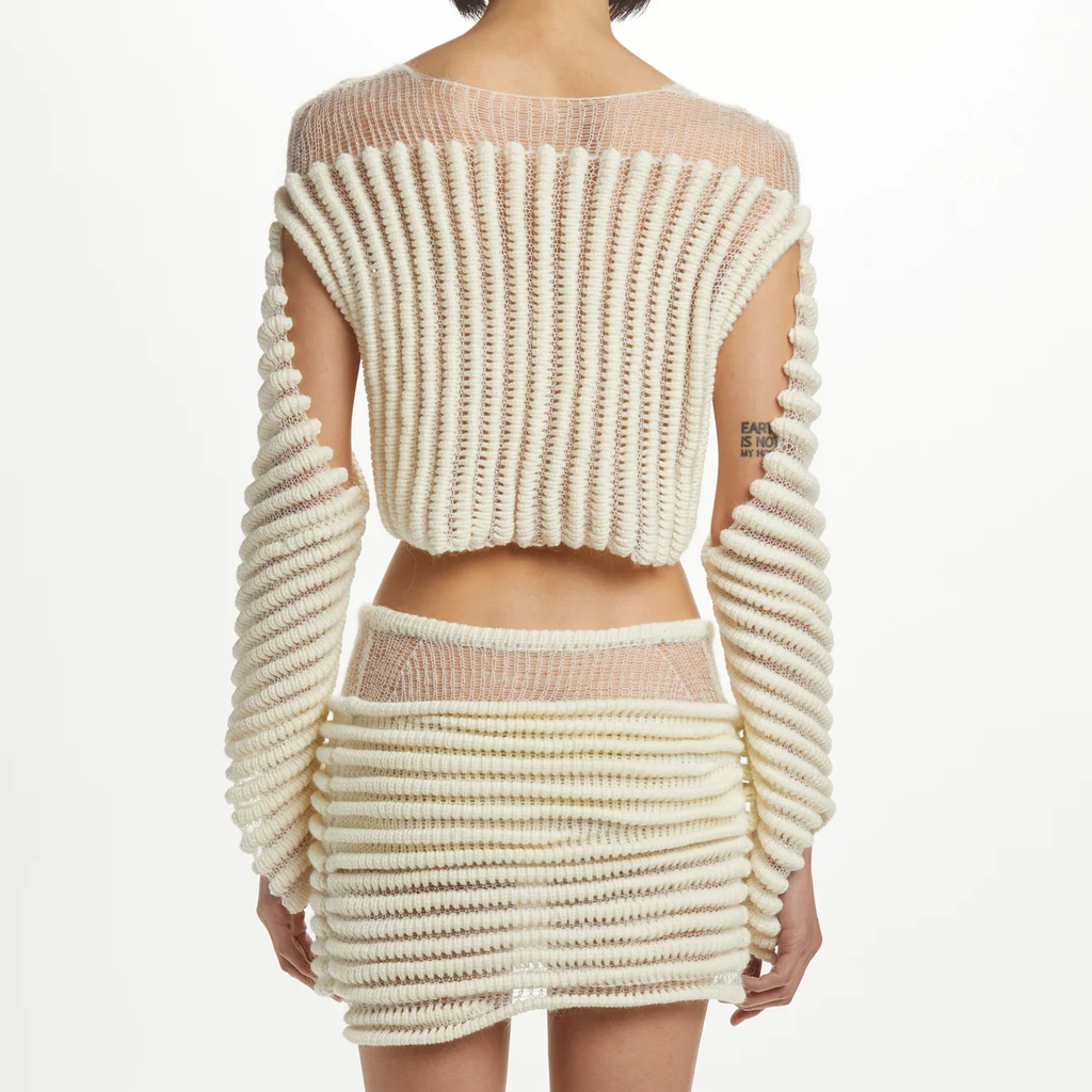 Please note that due to the nature of the handmade process, slight irregularities are characteristics of the production. Avoid placing knits with pointy objects. Remove jewellery when putting knits on.