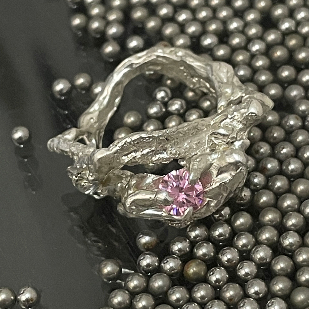 Handmade Silver Ring with lab stone by Colombe d'Humieres.