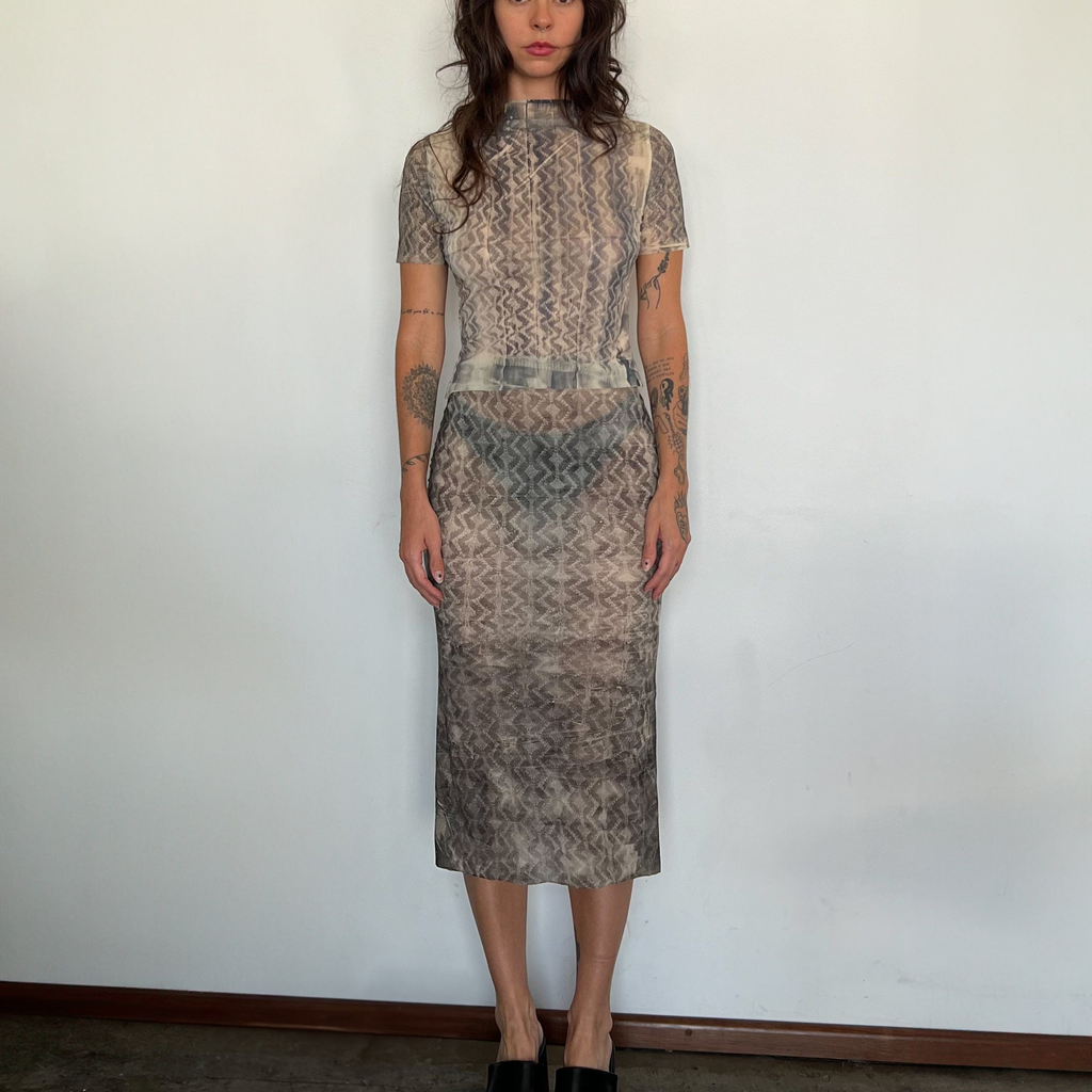 The lace-printed jersey top is crafted with Italian fabric and hand-printed in our studio in London.
