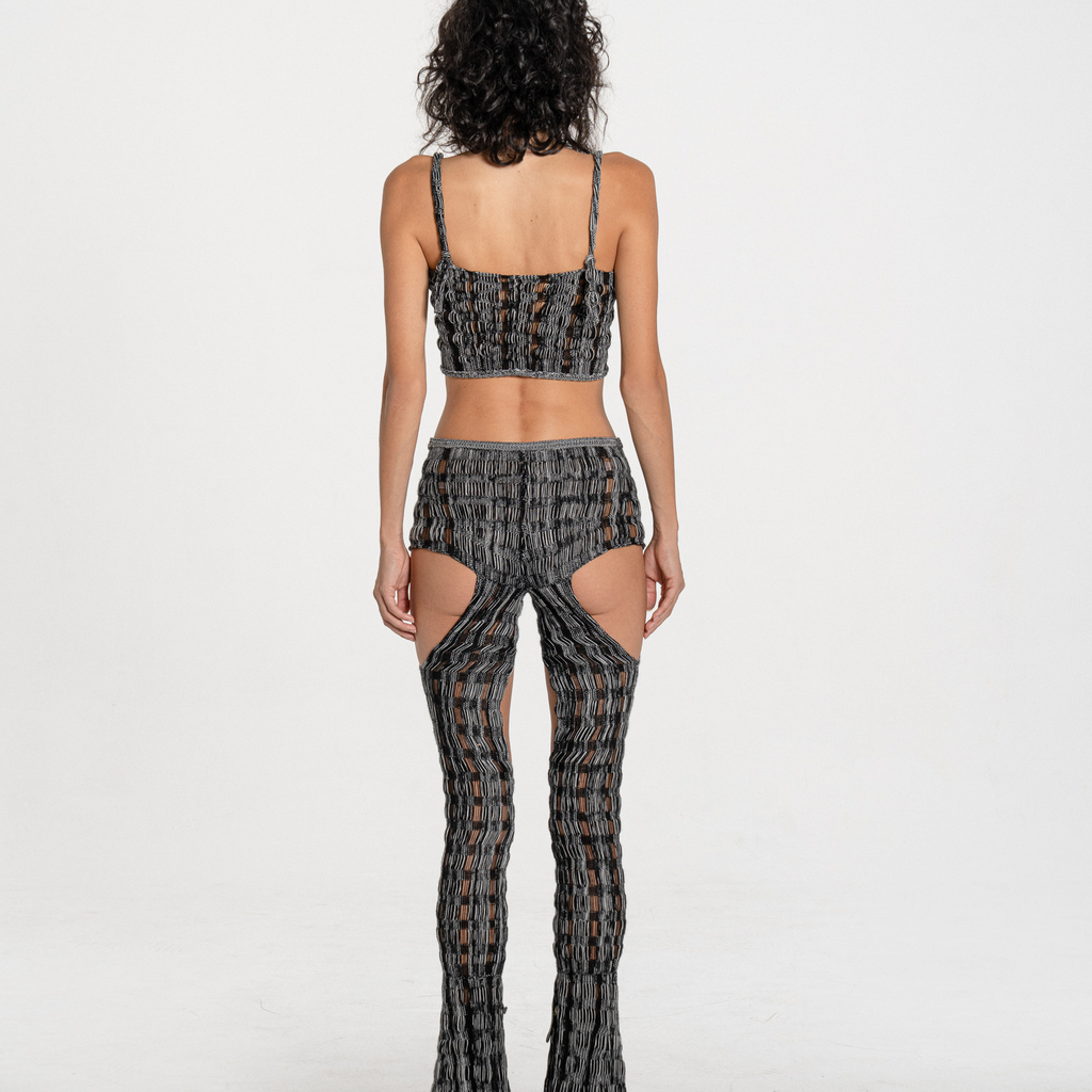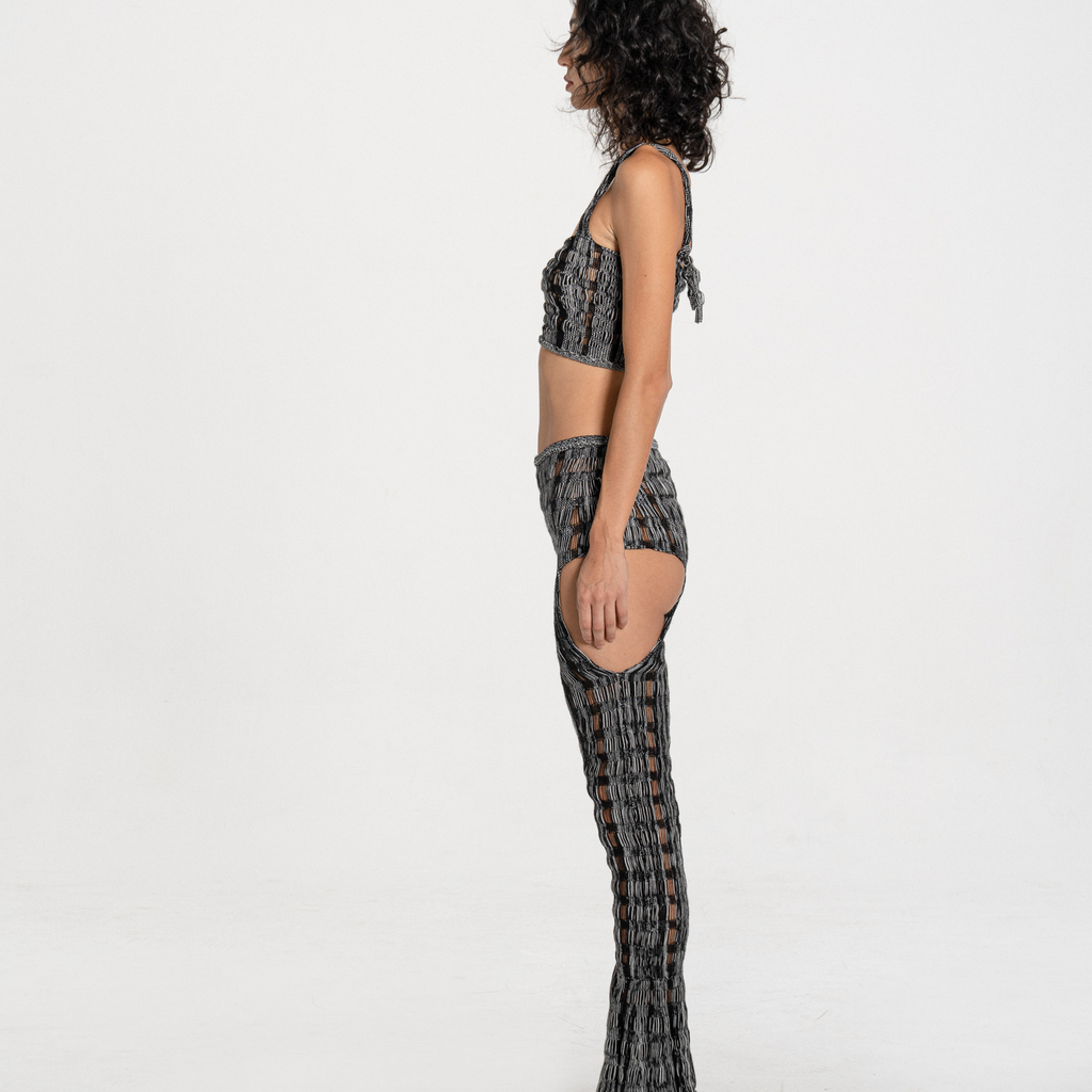 hand knit grid cut-out trouser