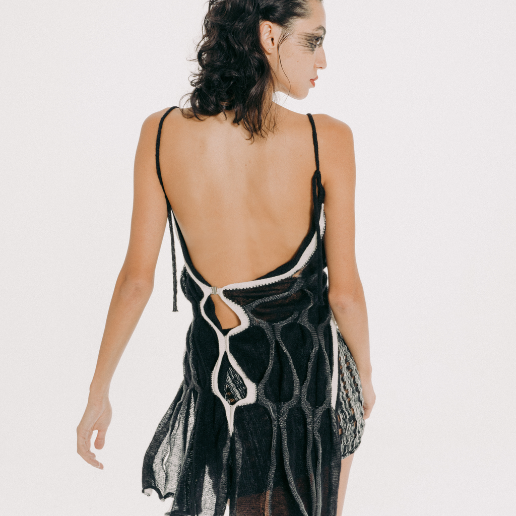 Tree vine inspired top with beautiful & delicate texture creating tangled visual like vines. Irregularity is normal with hand-knitted items. Note that this piece is delicate and may get caughten easily.