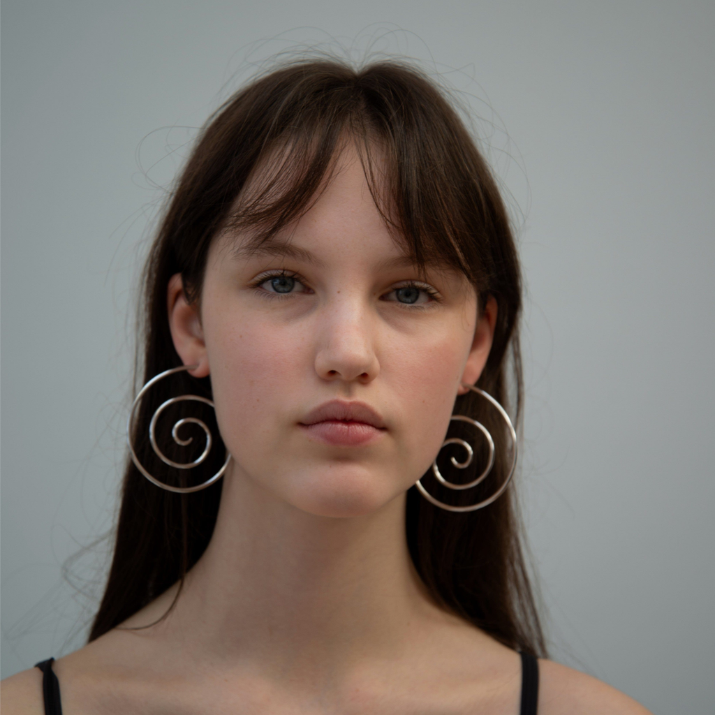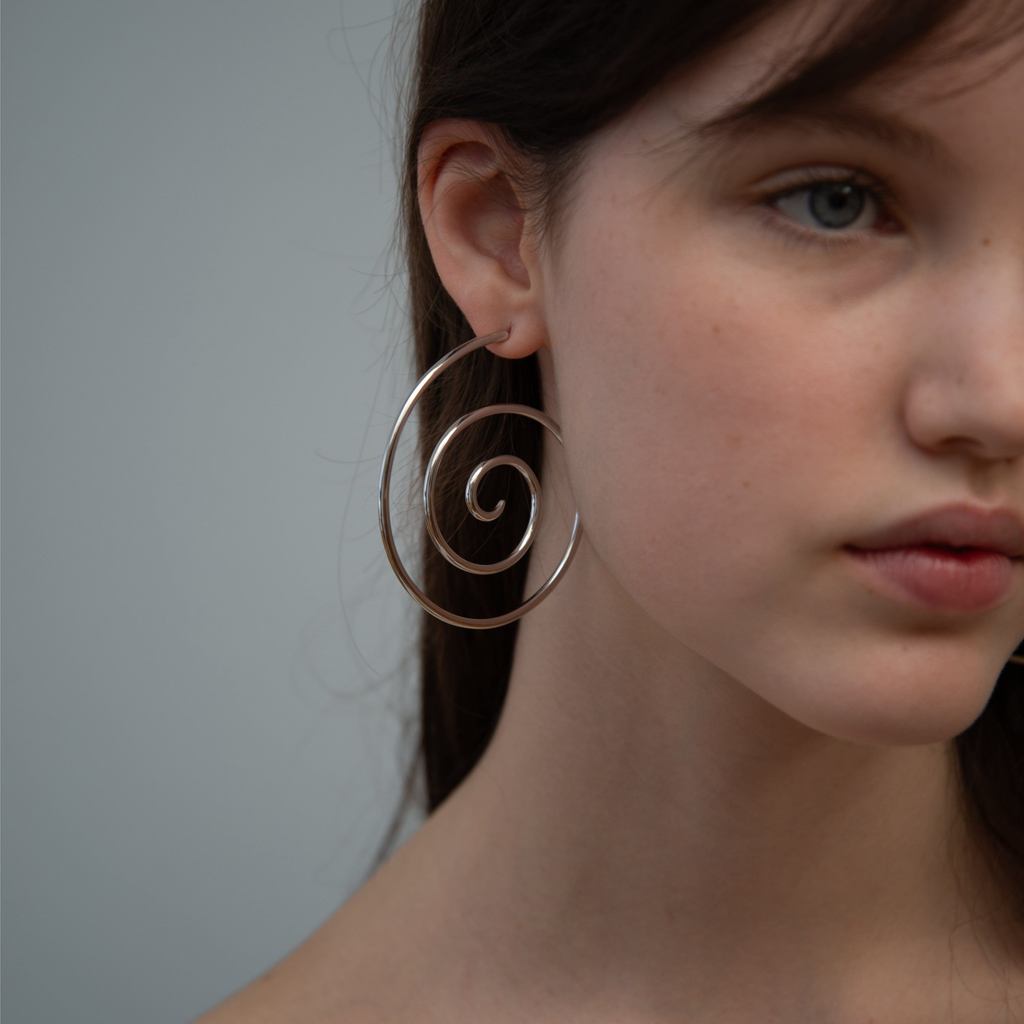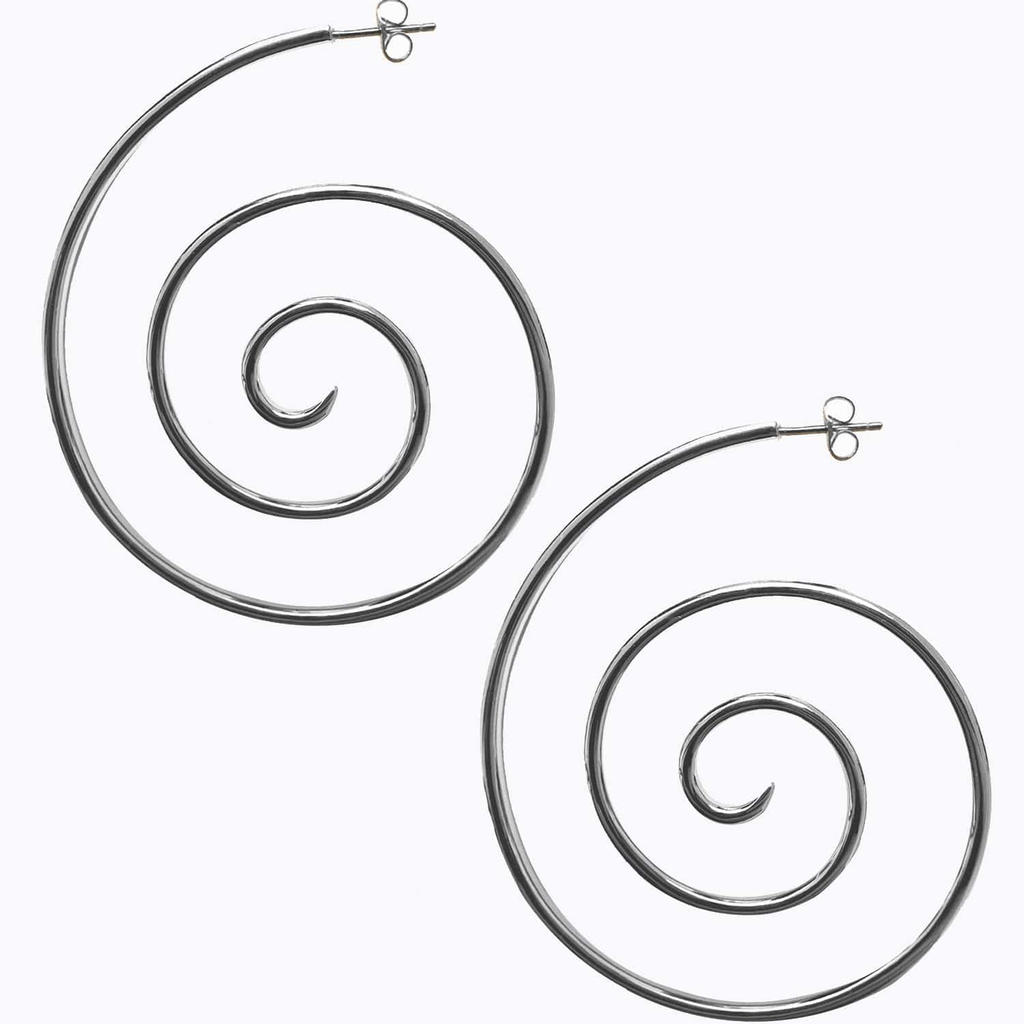 Pair Of Rhodium Coloured Brass Spiral Hoop Earrings