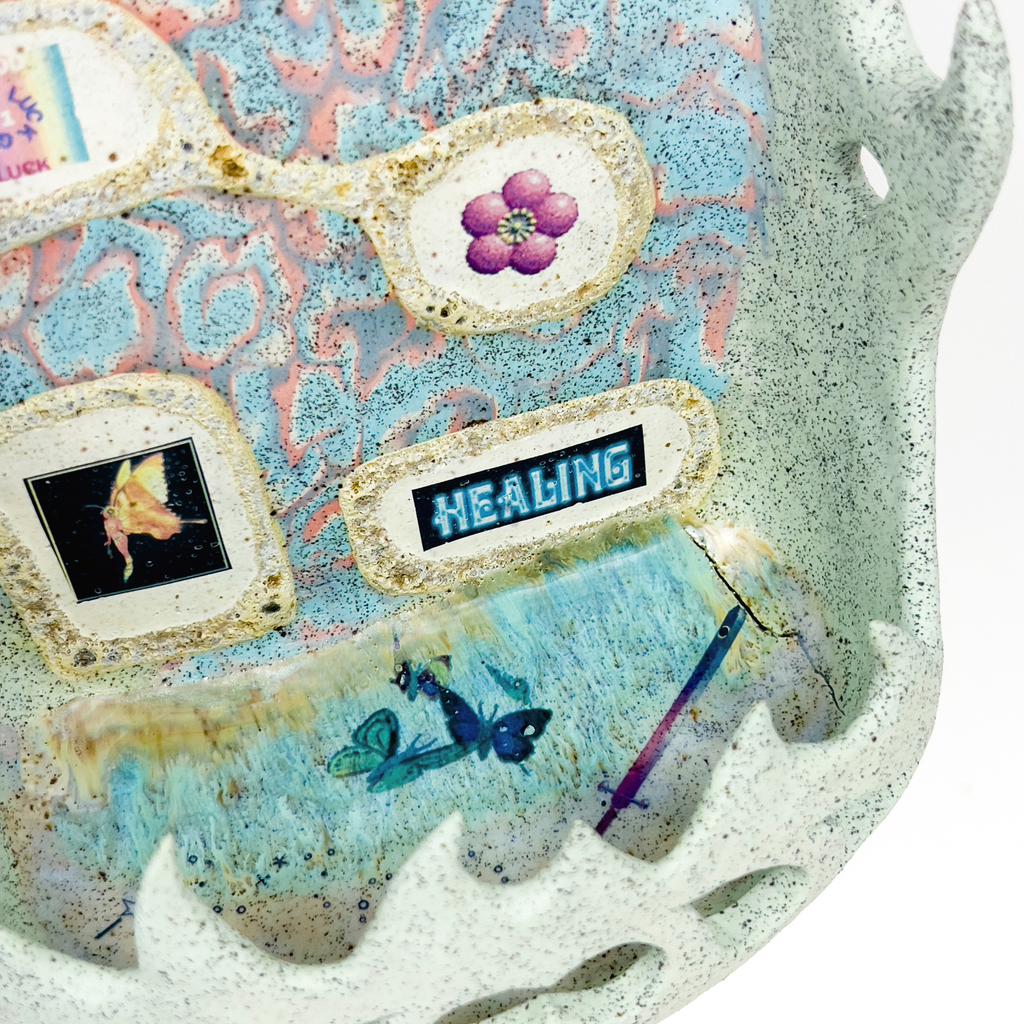 Kaley Flowers is a ceramic artist based in Ontario, Canada. Inspired by digital technologies, meme culture and online communities, she aims to solidify the nature of the Internet through the permanency of ceramic form. Creating both functional and sculptural work, her designs are inspired by materials, alchemical processes, and natural forms.