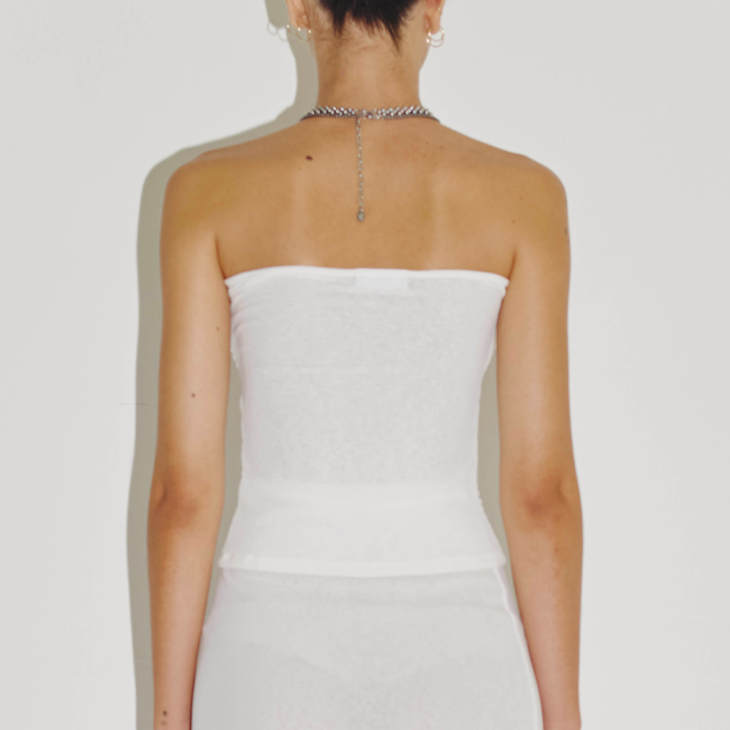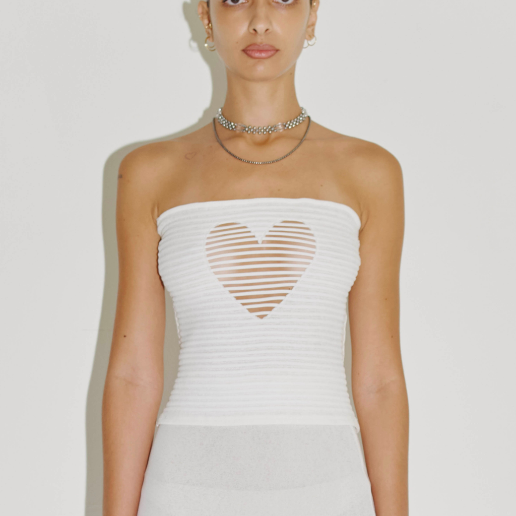 Through tunnels, heart cut out, e-band on the top end, stretch material