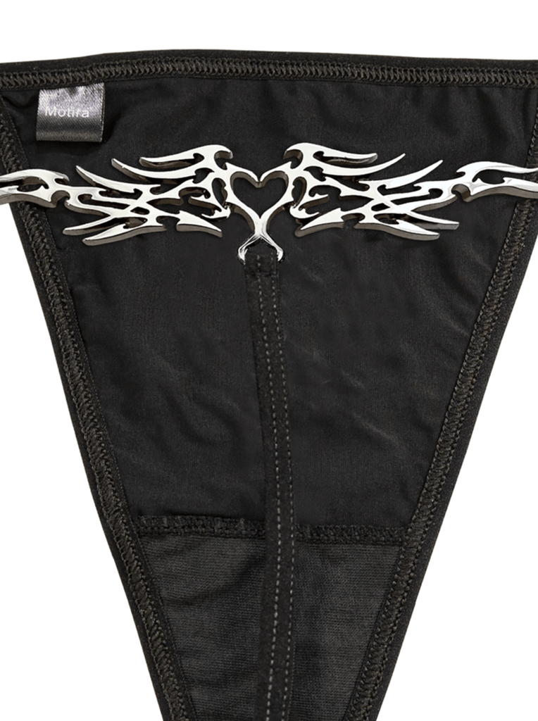 Featuring stainless steel hardware, MOTIRA’s thong collection is inspired by the Y2K era – think sexy lower back tattoos and low-slung waistlines.