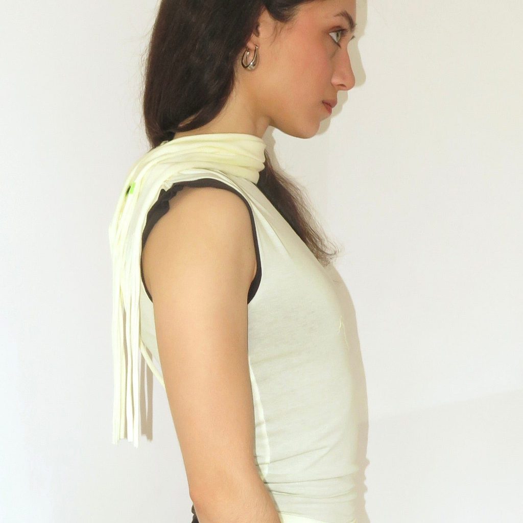 Scarf is sewn at the shoulder