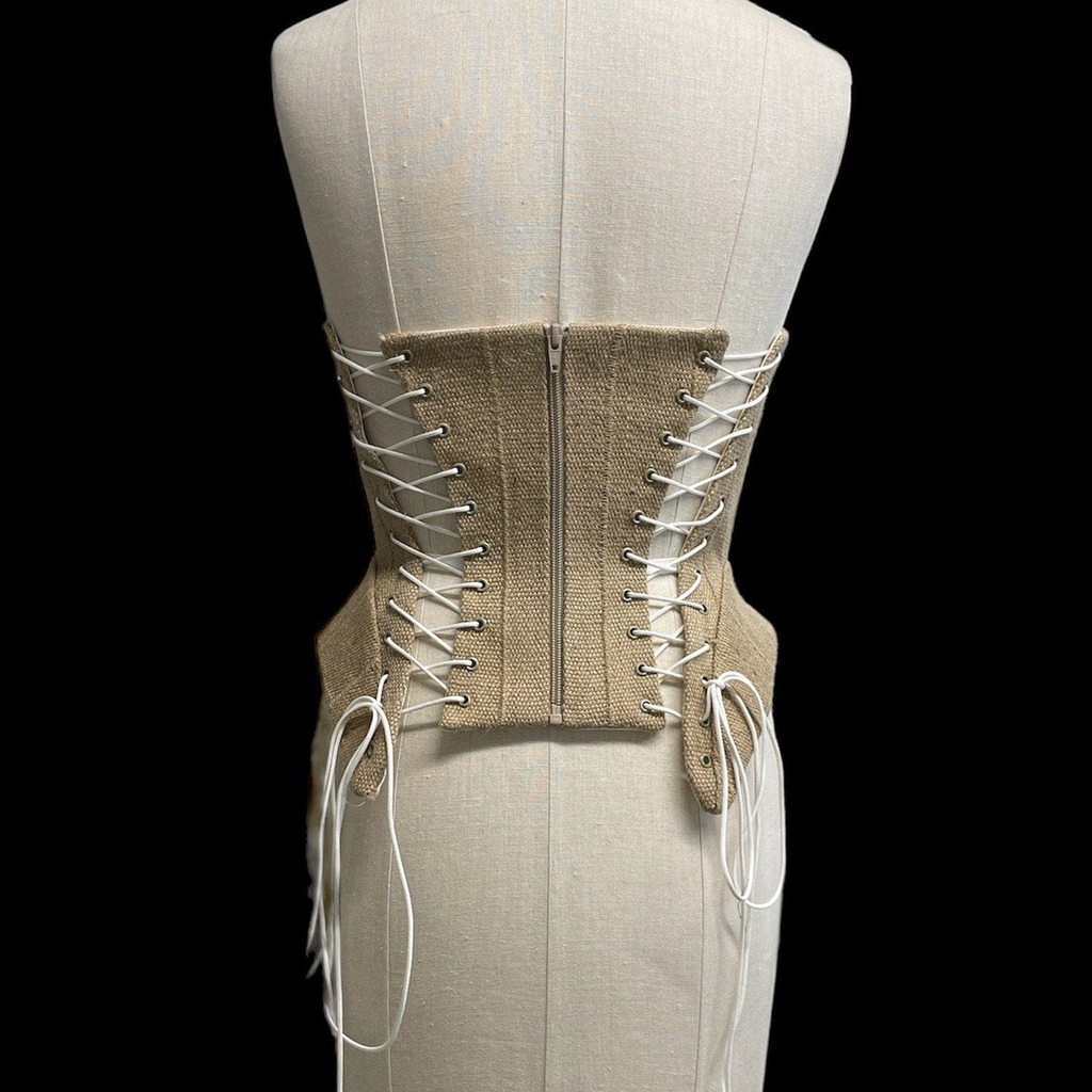 Seoul and London based independent fashion designer brand Gyouree Kim creates intricately layered womenswear that blends historical and contemporary elements. The creative process involves recycling off-cut and dead-stock fabrics to create one-of-a-kind corsetry and semi couture ready-to-wear. This process ensures that the designs are eco-friendly and helps to reduce waste in the fashion industry.