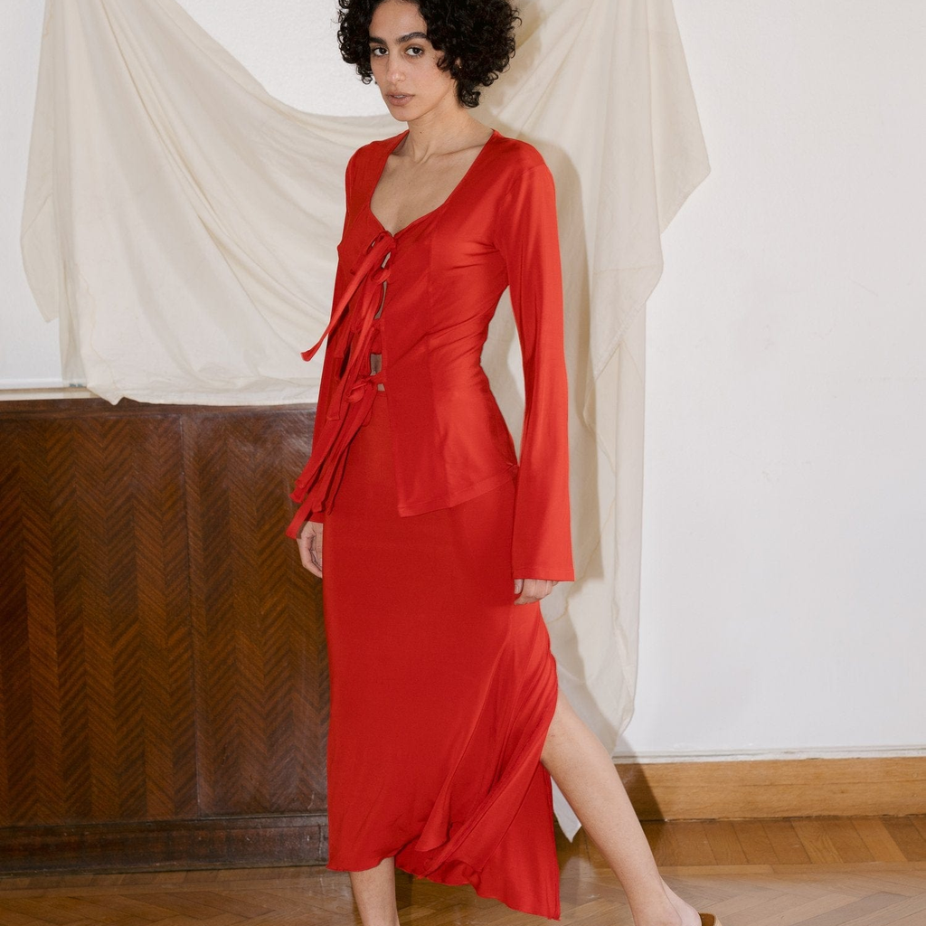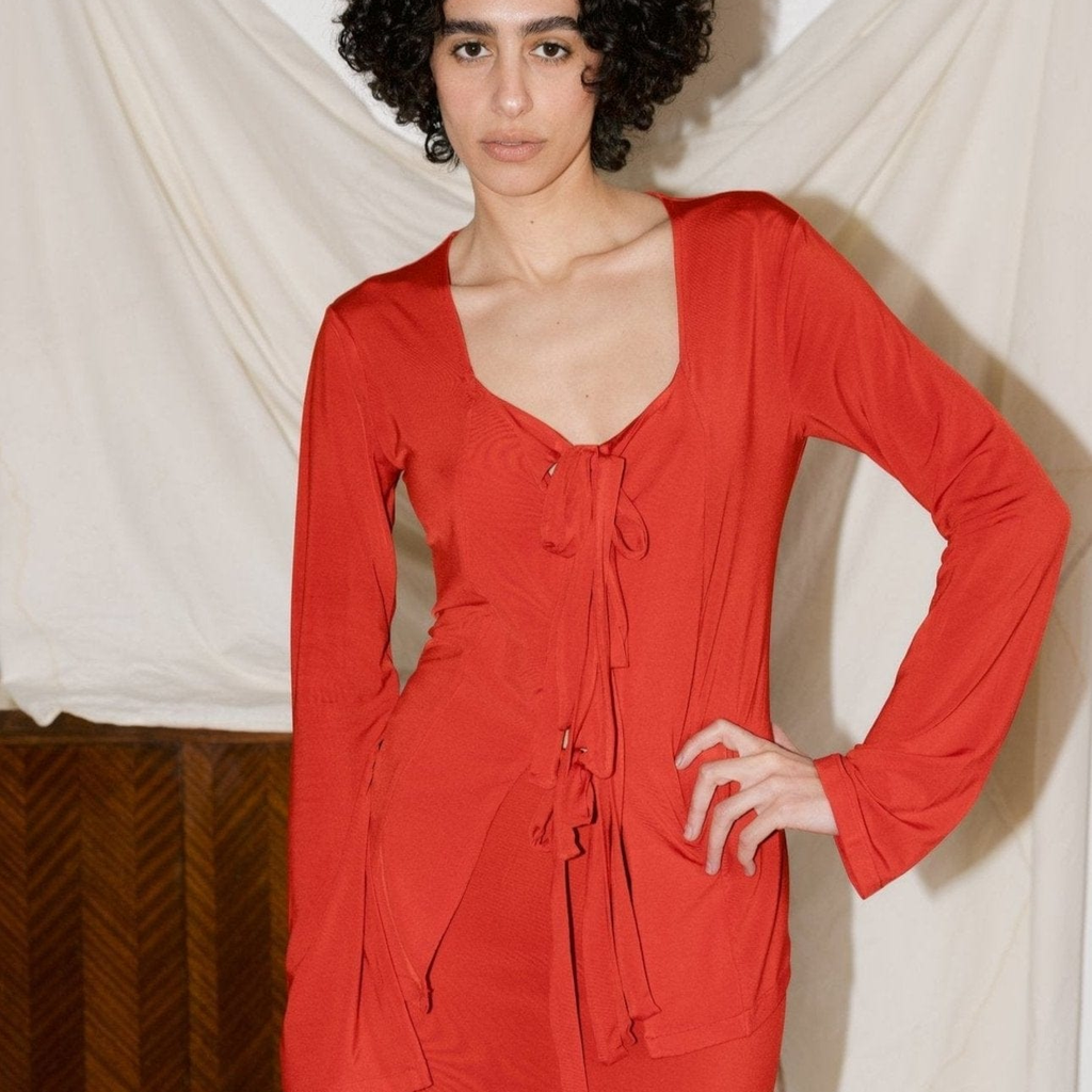 Fitted shirt with tie closure made of 100% Viscose.