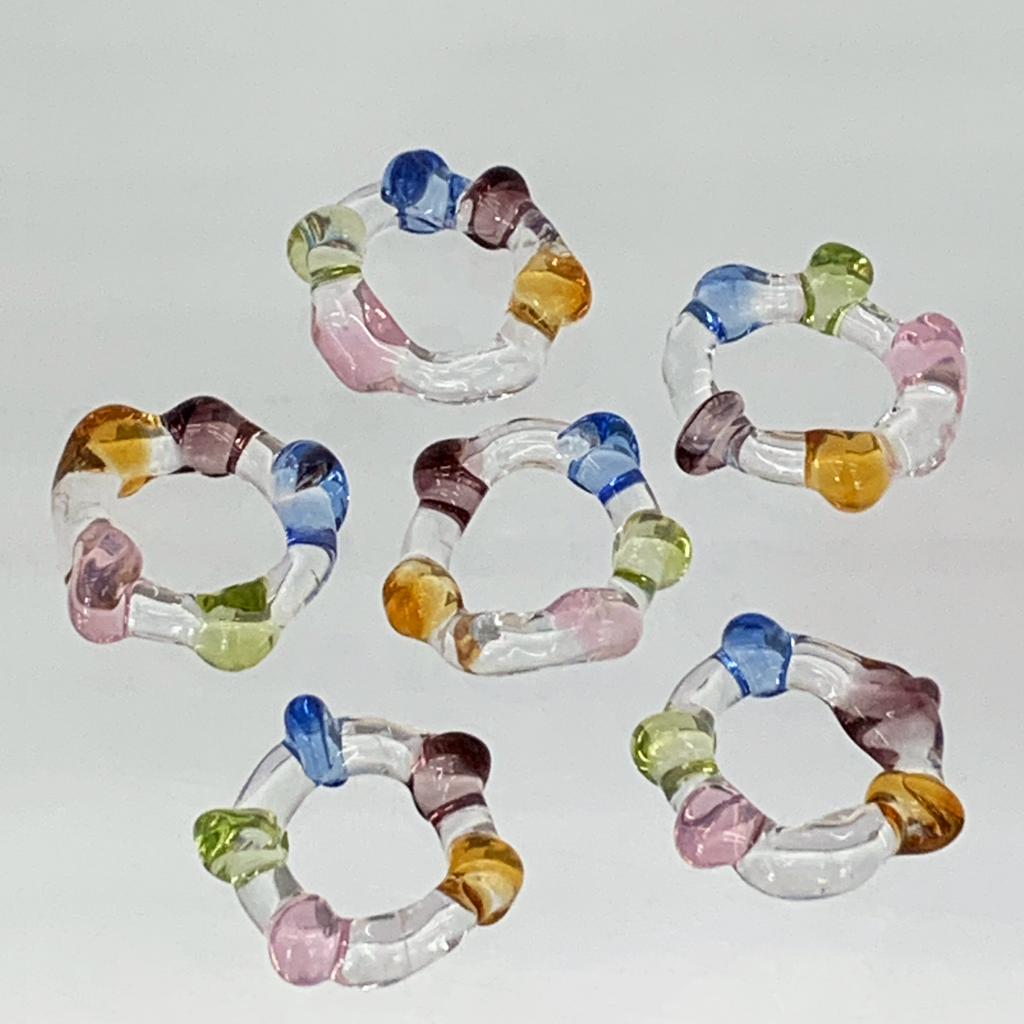 Care: the glass rings are kiln-annealed to ensure durability, but they are not indestructible. Please handle them with care. 3 month exchange guarantee after purchase if damaged.