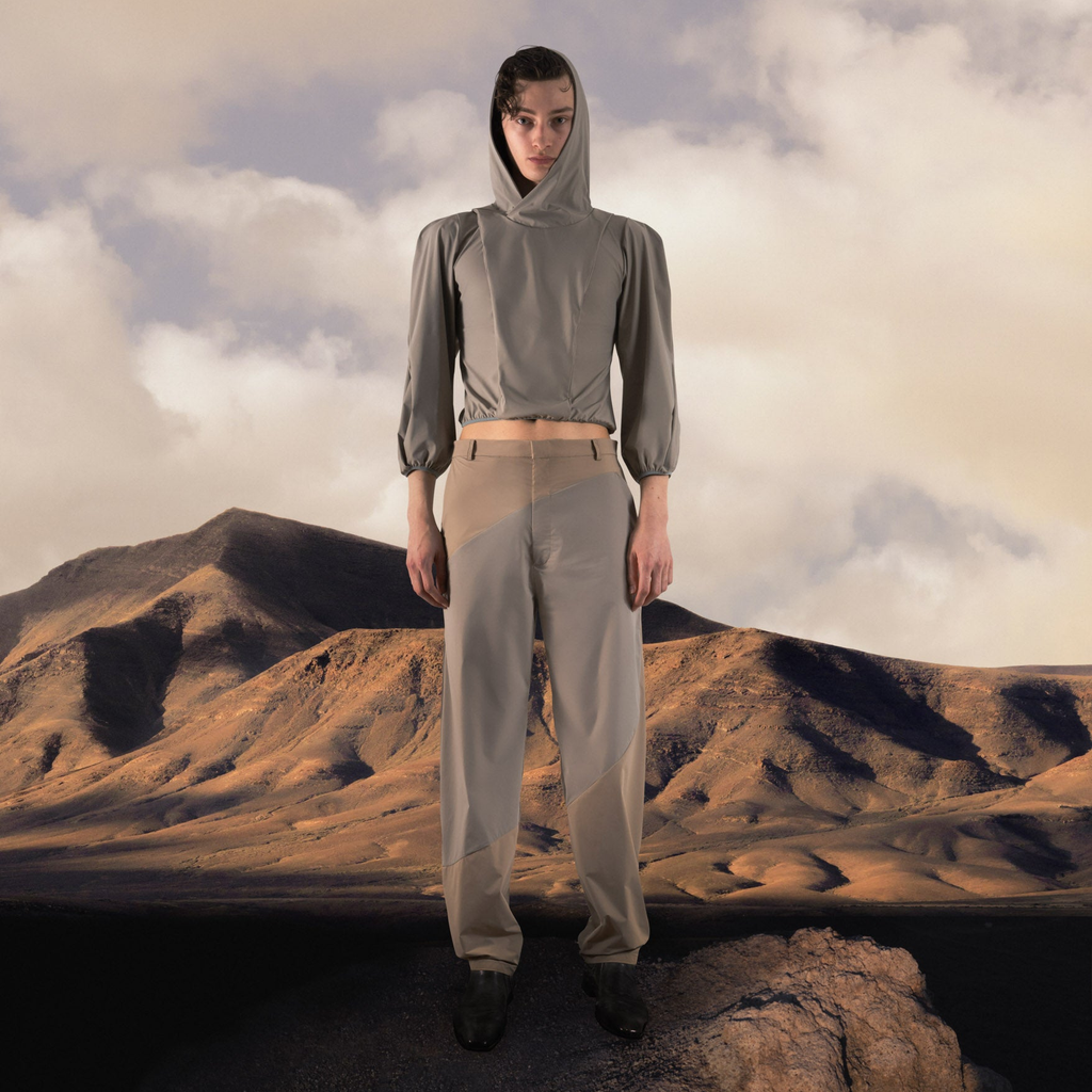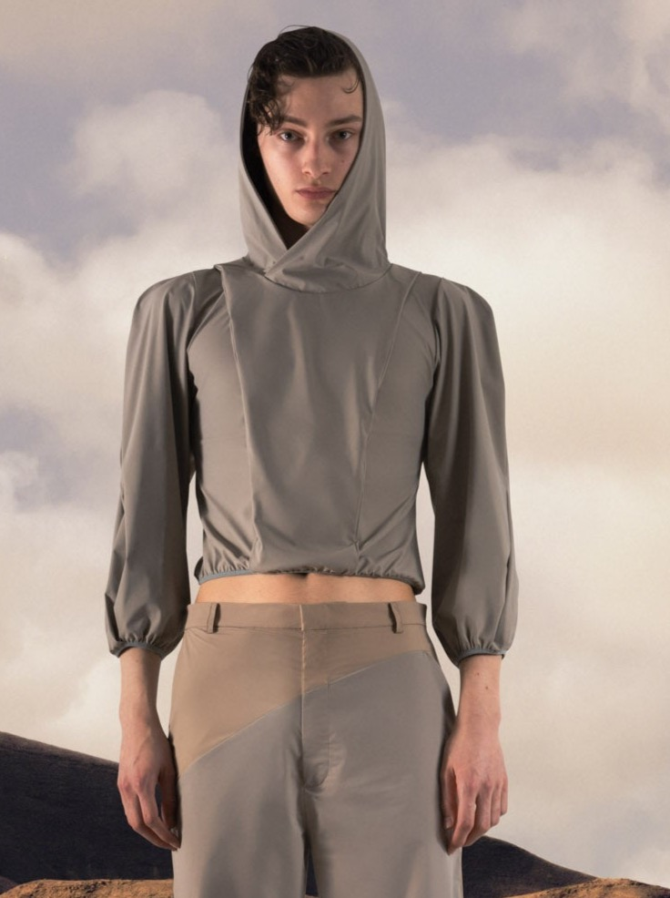 After graduating from Central Saint Martins and the Antwerp Royal Academy of Fine Arts, Izzy Du launched her brand in 2021. Izzy Du envisions a remarkable world where the inhabitants are transformed from the surrounding environment. Her work focuses on the external shape of garments and their internal structure, employing various materials to create a dimensional contrast between the garment and the negative space it creates on the body.