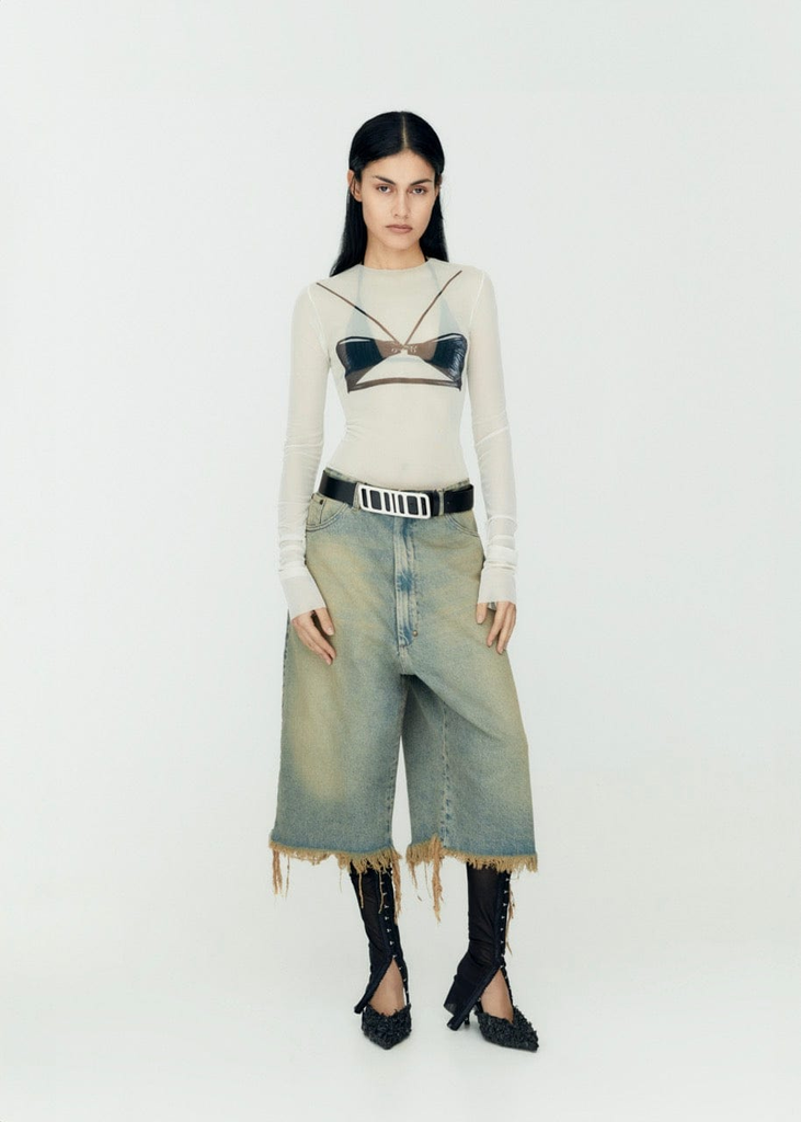 ONRUSHW23FH, a Spanish experimental design brand founded in September 2020 by Albert Sánchez and Sebastian Cameras. Sánchez and Cameras initiate their design journey with a curated amalgamation of influences—movies, images, words, sounds—that coalesce into a substantial mood board. At the core of the duo's creative process lies a seamless integration of digital craftsmanship. 3D prototypes, initially draped over mannequins like canvases, undergo a transformative journey of modification and distortion.