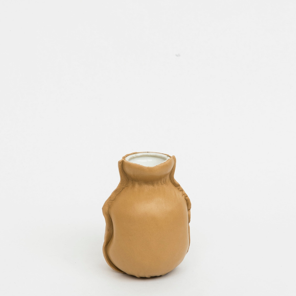 Leather covered ceramic vase by Camille Buhler.