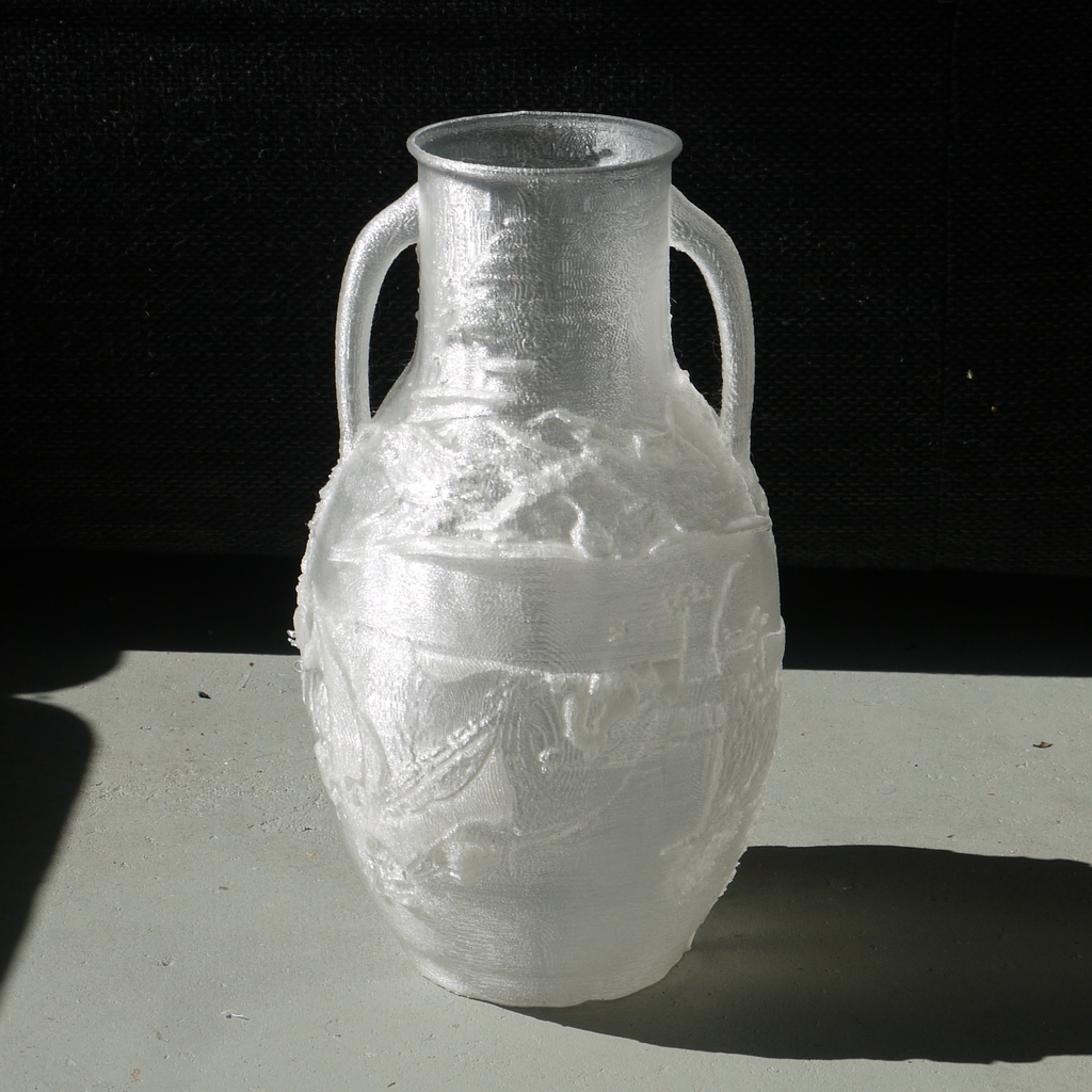 Inauthentic Orientals series uses machine learning algorithms to generate oriental imagery based on databases of collected archives. This imagery is then modelled onto the skin of archetypical vase profiles, questioning the authentic aesthetic of the orient. The vases are then 3D printed in PLA in various filaments.