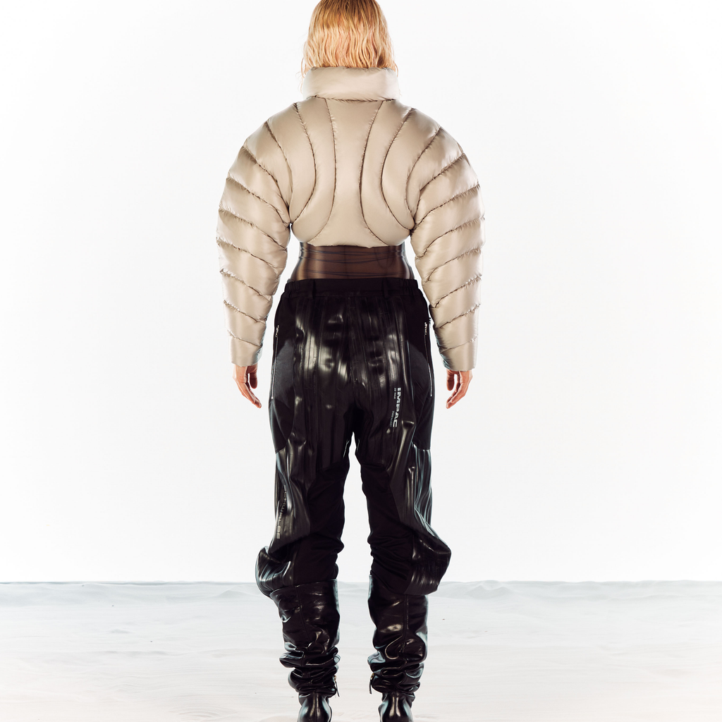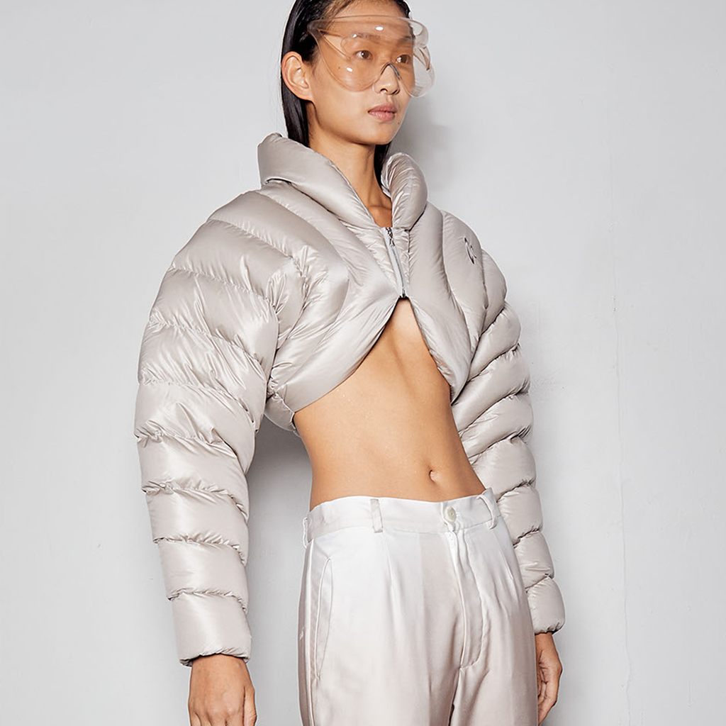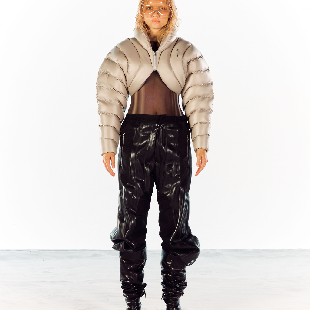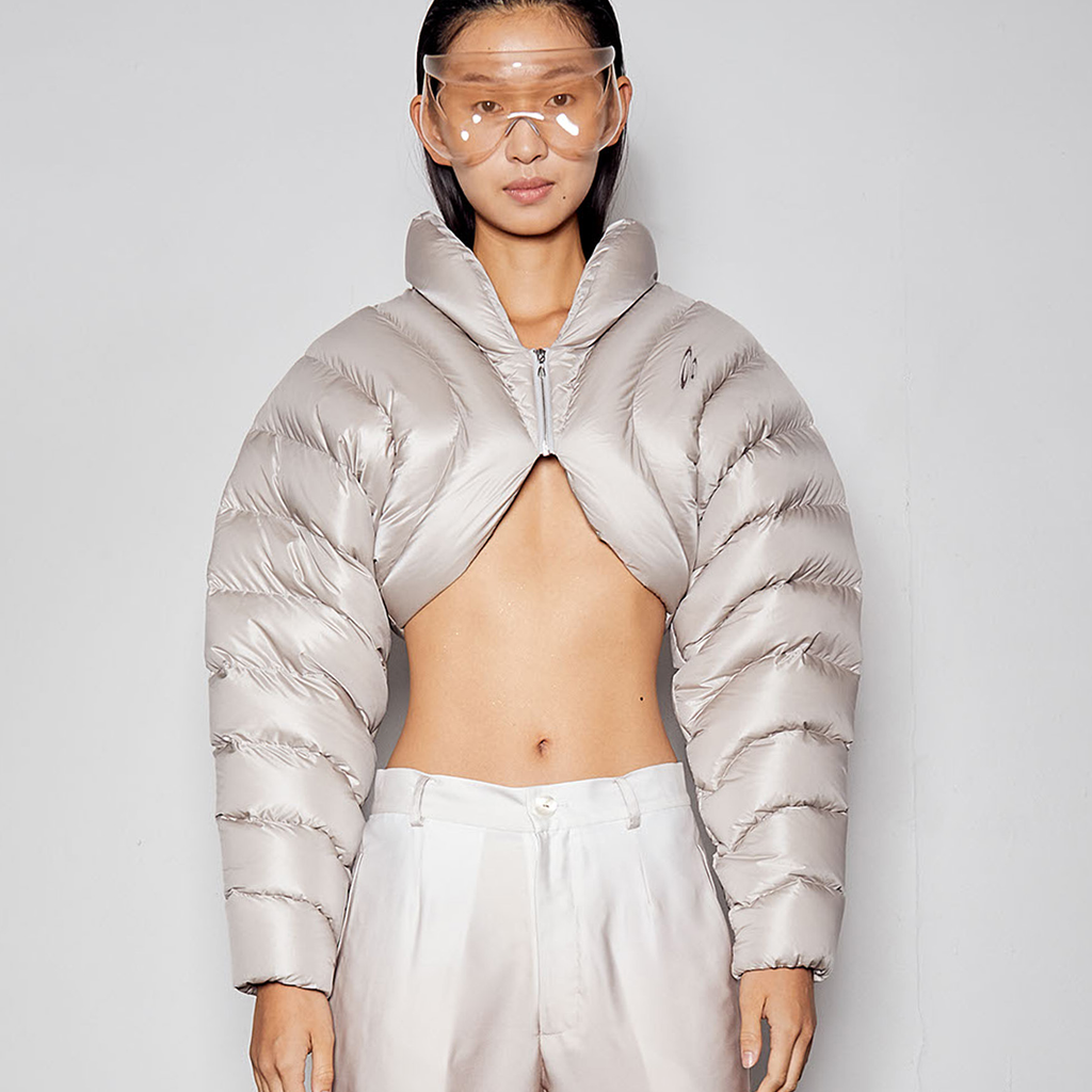 After graduating from Central Saint Martins and the Antwerp Royal Academy of Fine Arts, Izzy Du launched her brand in 2021. Izzy Du envisions a remarkable world where the inhabitants are transformed from the surrounding environment. Her work focuses on the external shape of garments and their internal structure, employing various materials to create a dimensional contrast between the garment and the negative space it creates on the body.
