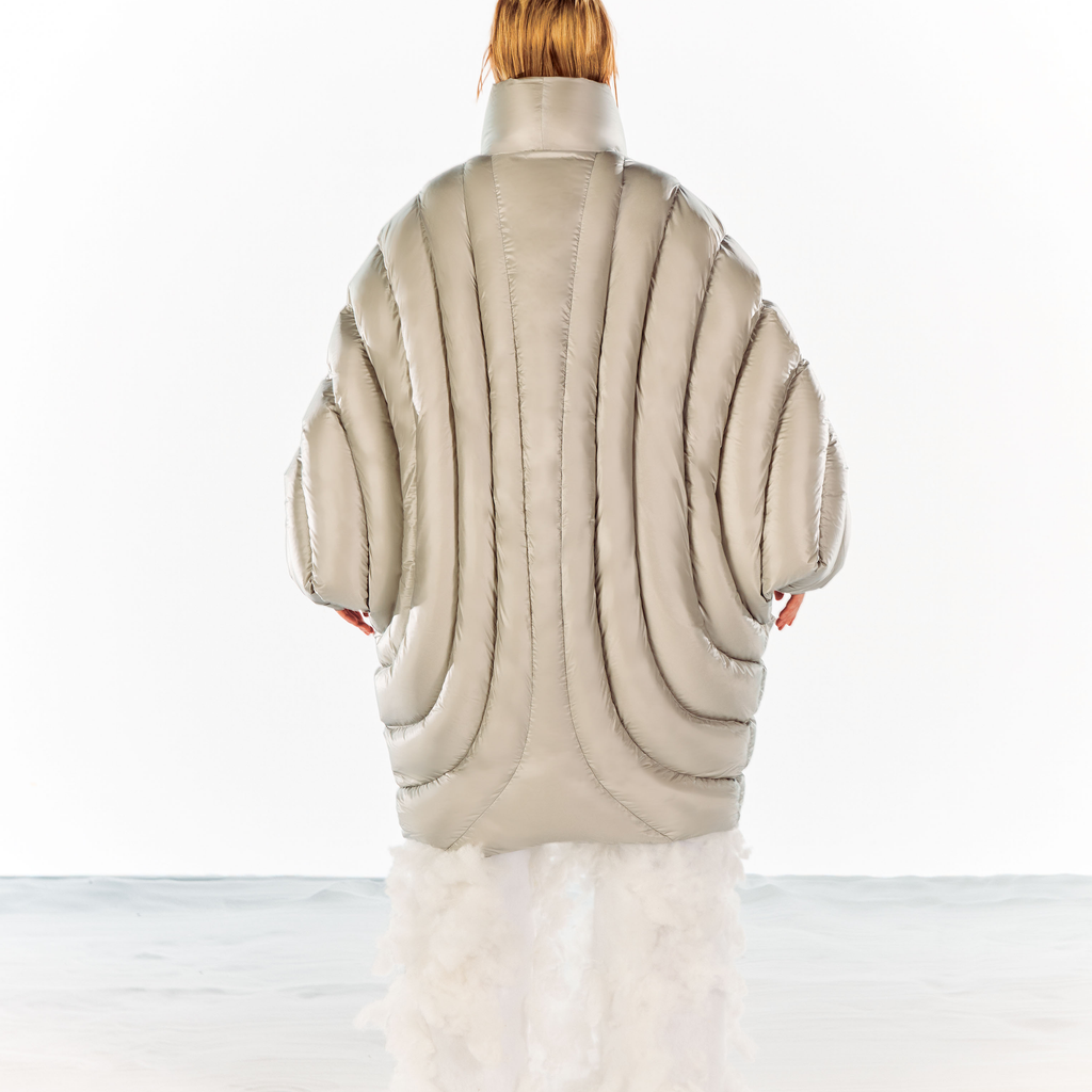 After graduating from Central Saint Martins and the Antwerp Royal Academy of Fine Arts, Izzy Du launched her brand in 2021. Izzy Du envisions a remarkable world where the inhabitants are transformed from the surrounding environment. Her work focuses on the external shape of garments and their internal structure, employing various materials to create a dimensional contrast between the garment and the negative space it creates on the body.