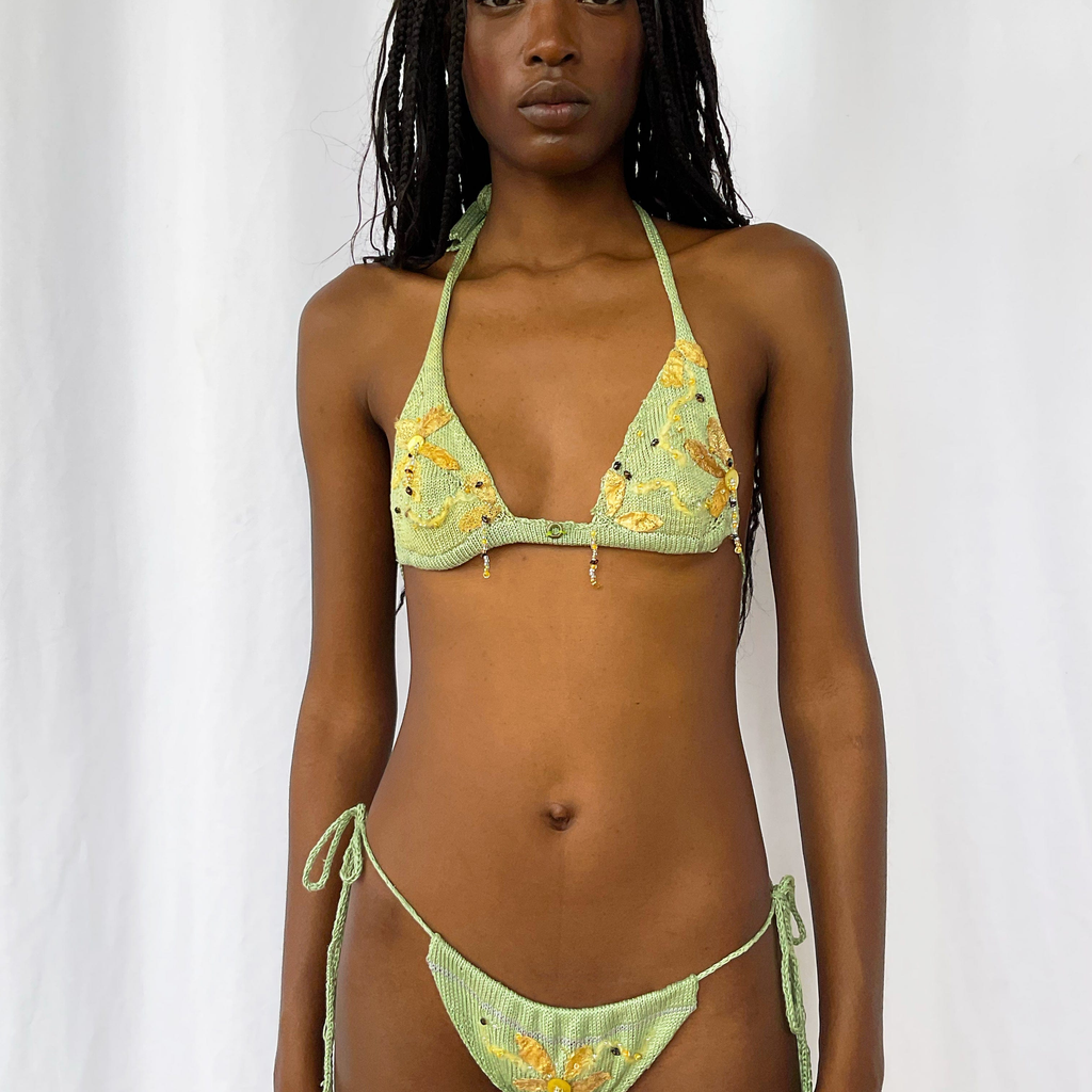 The bikini is fully adjustable via tie closures. GRACE GUI Bikinis are fully functional swimwear- from the sea to the pool. Sizing runs small.