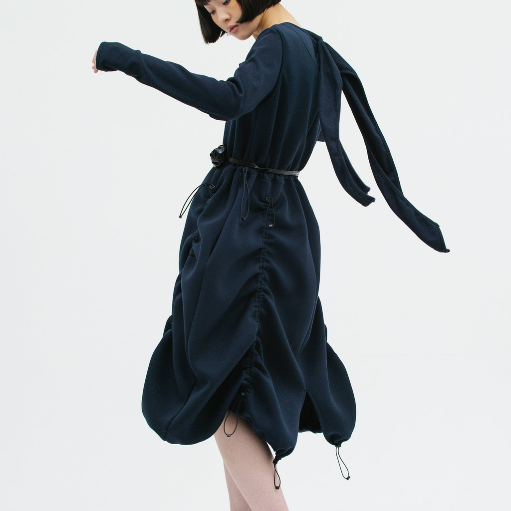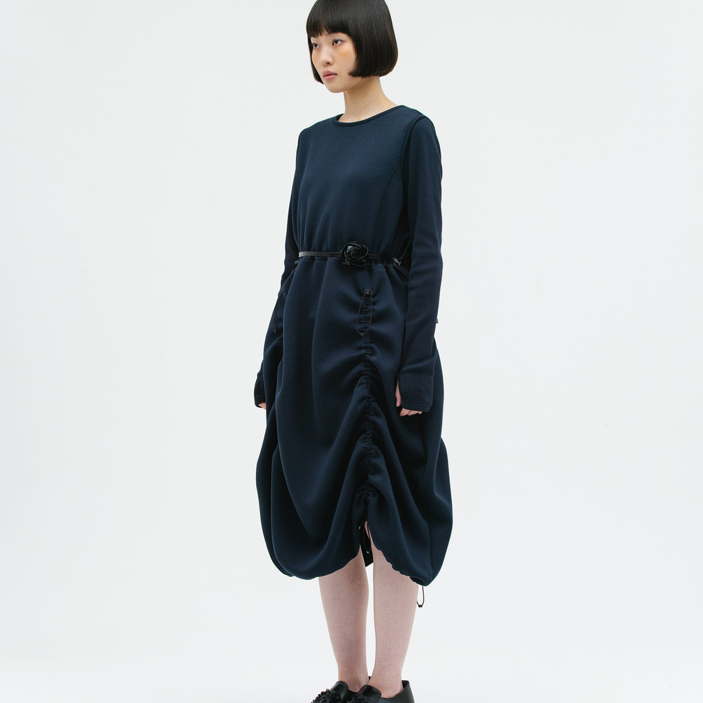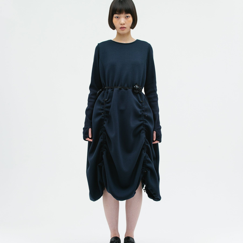 Jersey Shirring dress by SAENGIN STUDIOS.