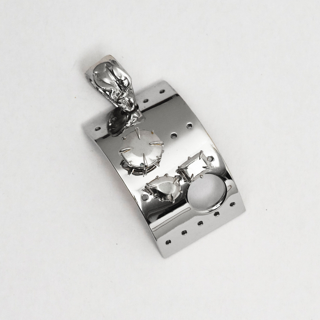 Pierced jewellery tag designed to transport your earrings anywhere. Plug in MQT earrings to customise your unique pendant. The pendant is on an adjustable diamond cut trace chain.