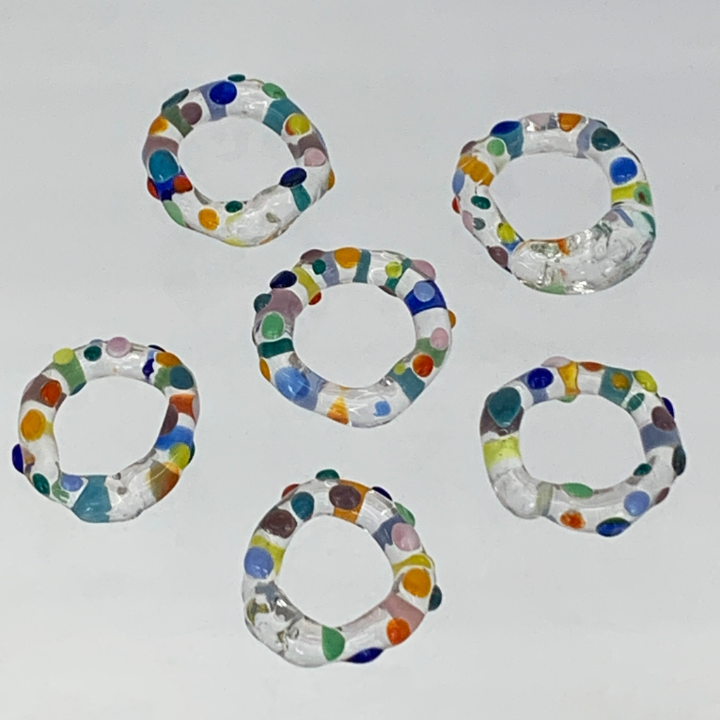 Care: the glass rings are kiln-annealed to ensure durability, but they are not indestructible. Please handle them with care. 3 month exchange guarantee after purchase if damaged.