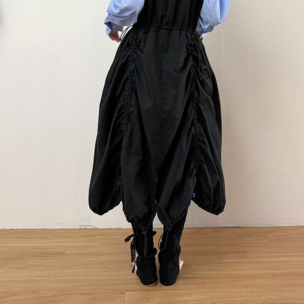banding ruffle sha dot skirt - black