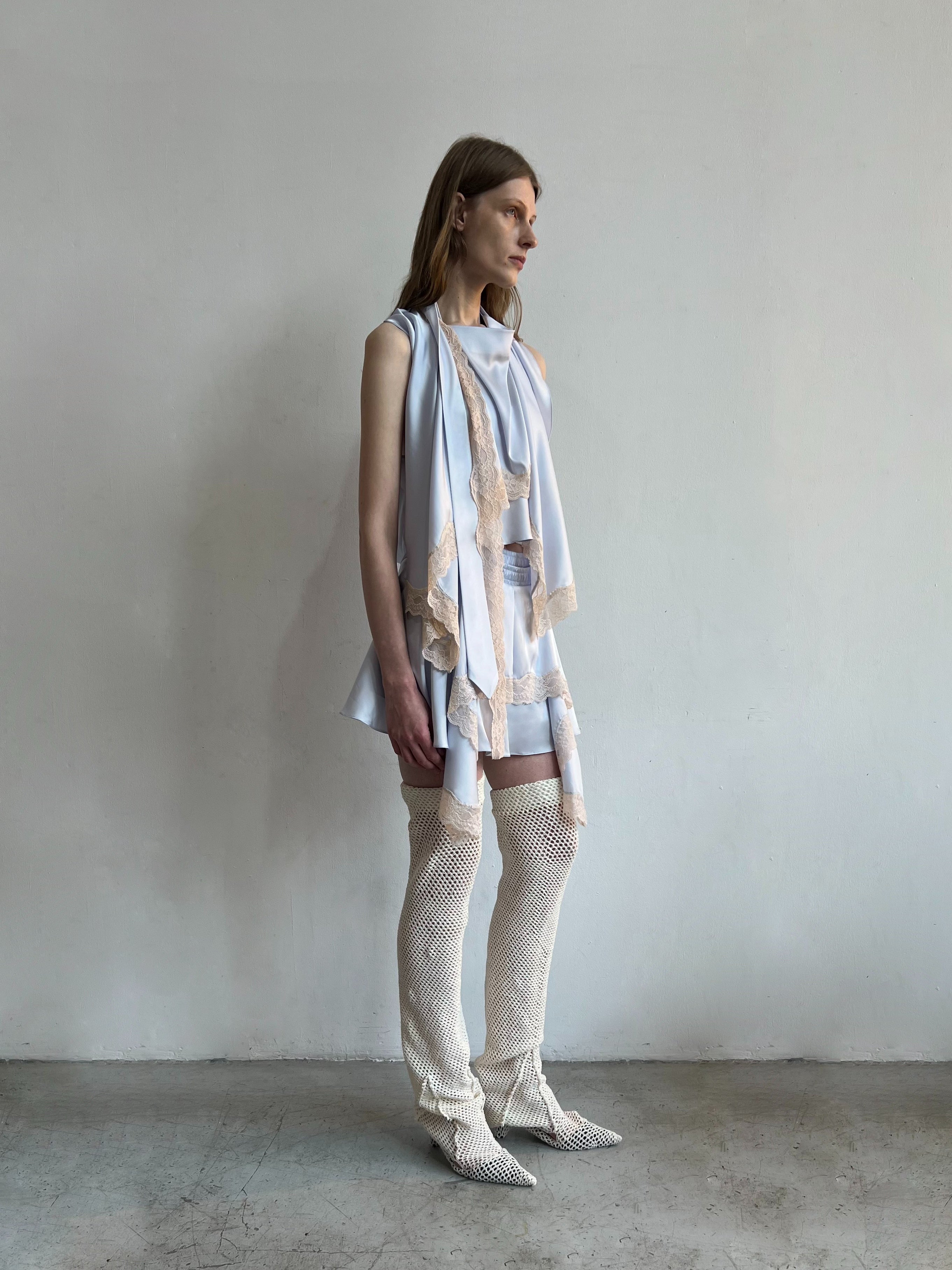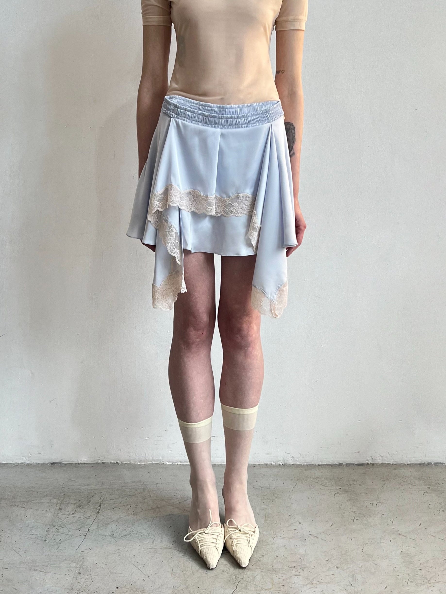 Lace-trimmed satin skirt by nastyamasha. Material: 97% polyester, 3% spandex this piece fits true to size.