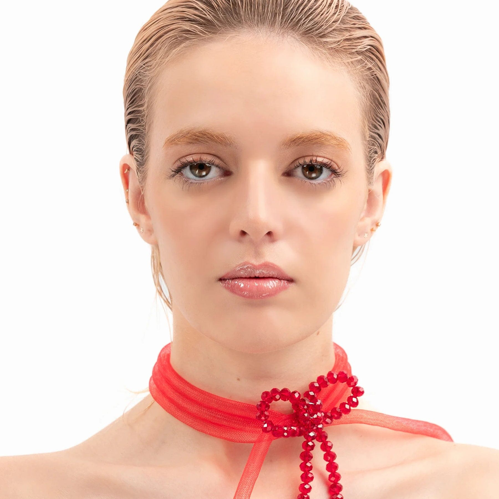 lady ribbon choker - pink