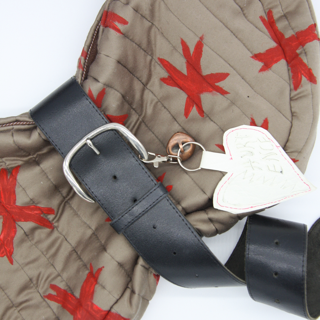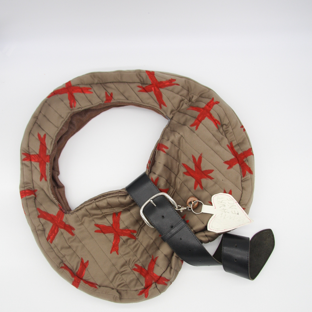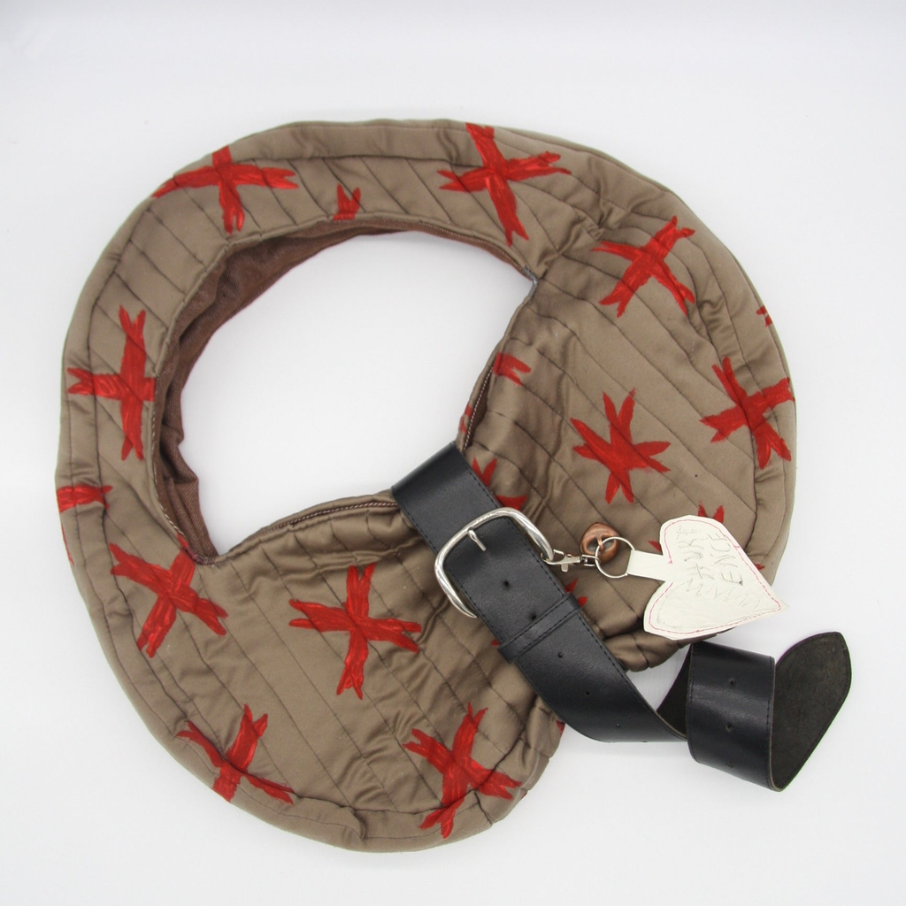 1 of 1 Large kisses bag by HURTENCEAcrylic hand painted kiss flowers onto quilted taupe.Cinched with leather belt, adjust to the contents of your bag