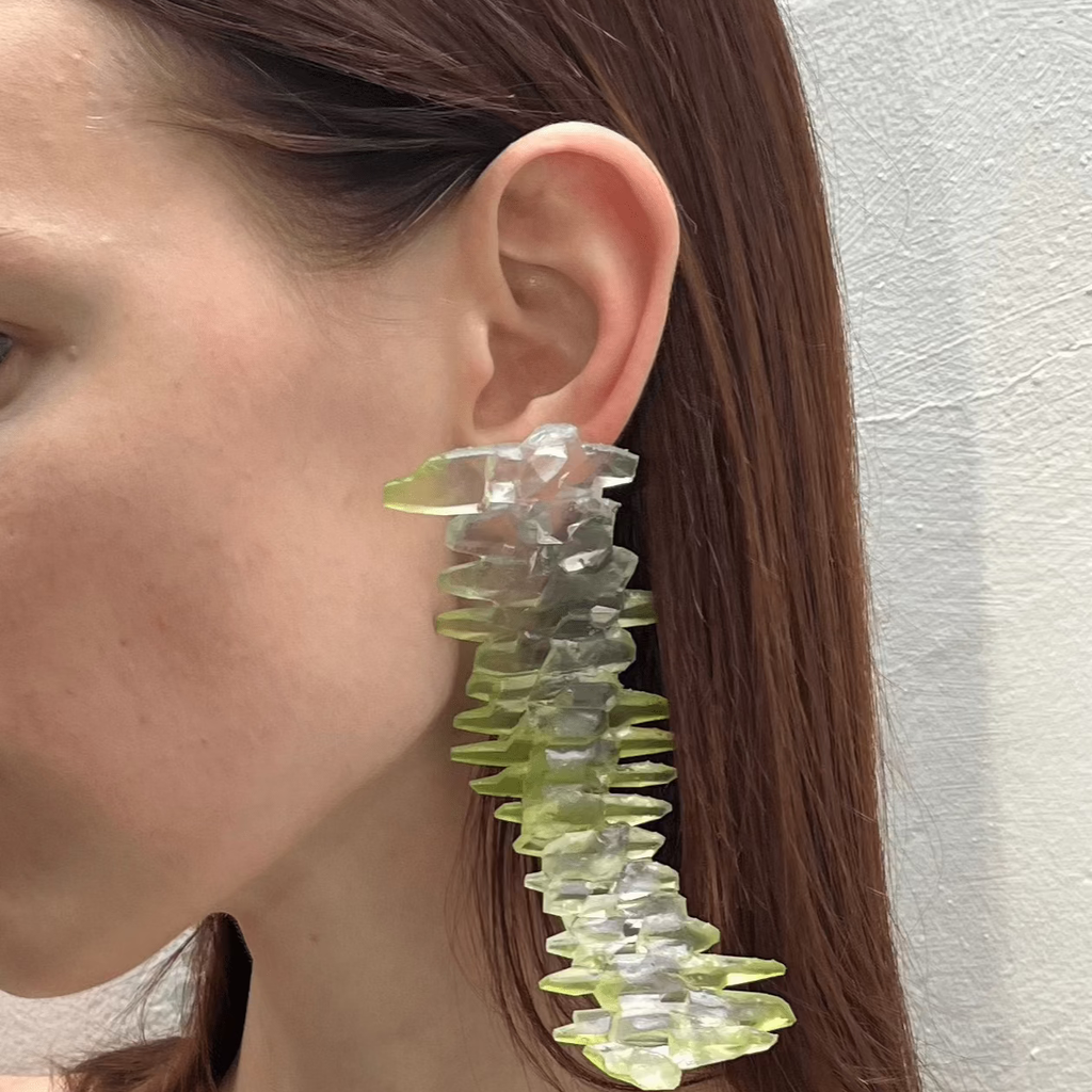 Bertie Garnett is an multidisciplinary artist who’s accessories combine patterns from ancient symbolism with digital software and interfaces. Garnett is interested in the parallels between digital and traditional crafts, and looks to depict ways in which 3D rendering and printing can embody a sense of organicism and enchantment.