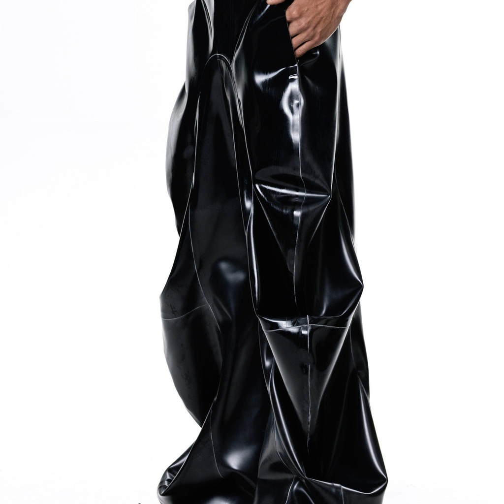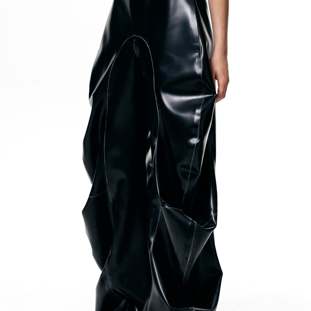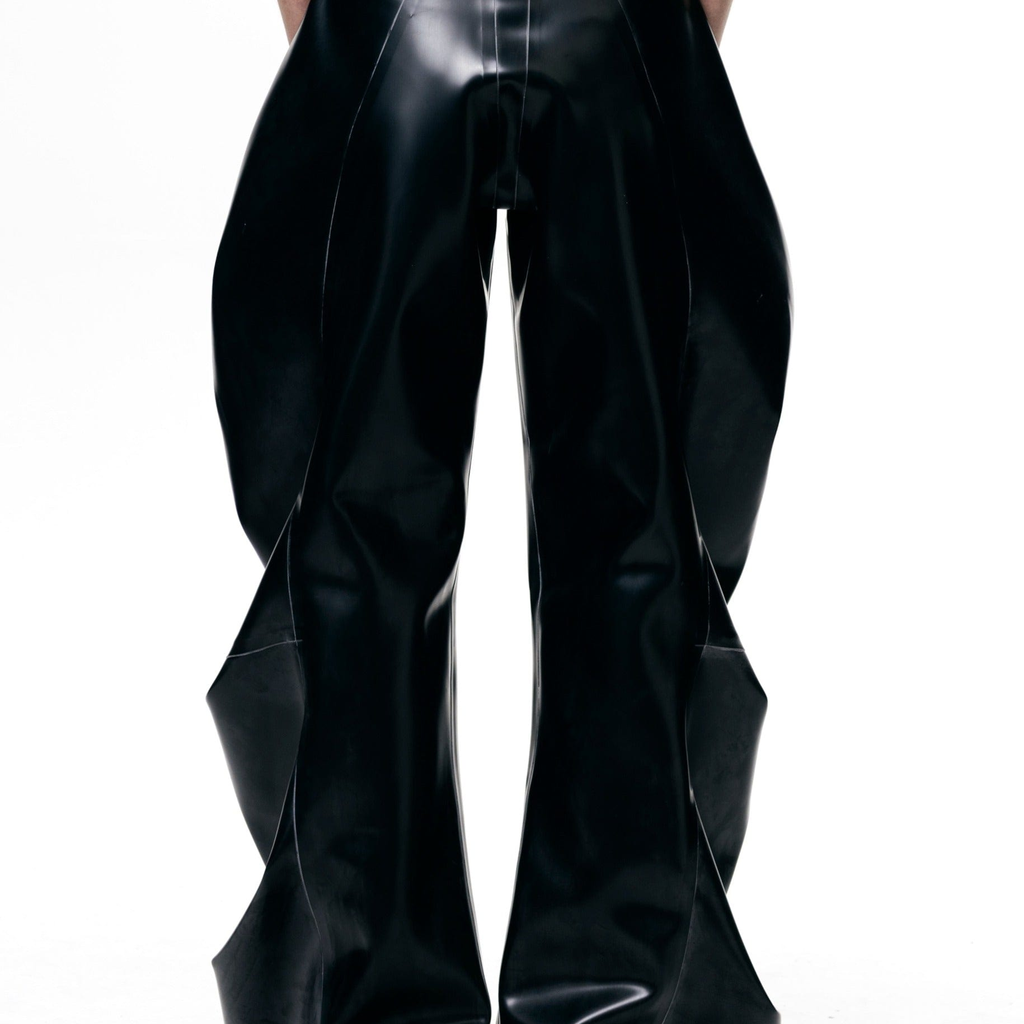 HARRI's Signature Latex Deflated Trousers, all hand-cut and hand-made that drapes perfectly, in the classic black. Relaxed fit.