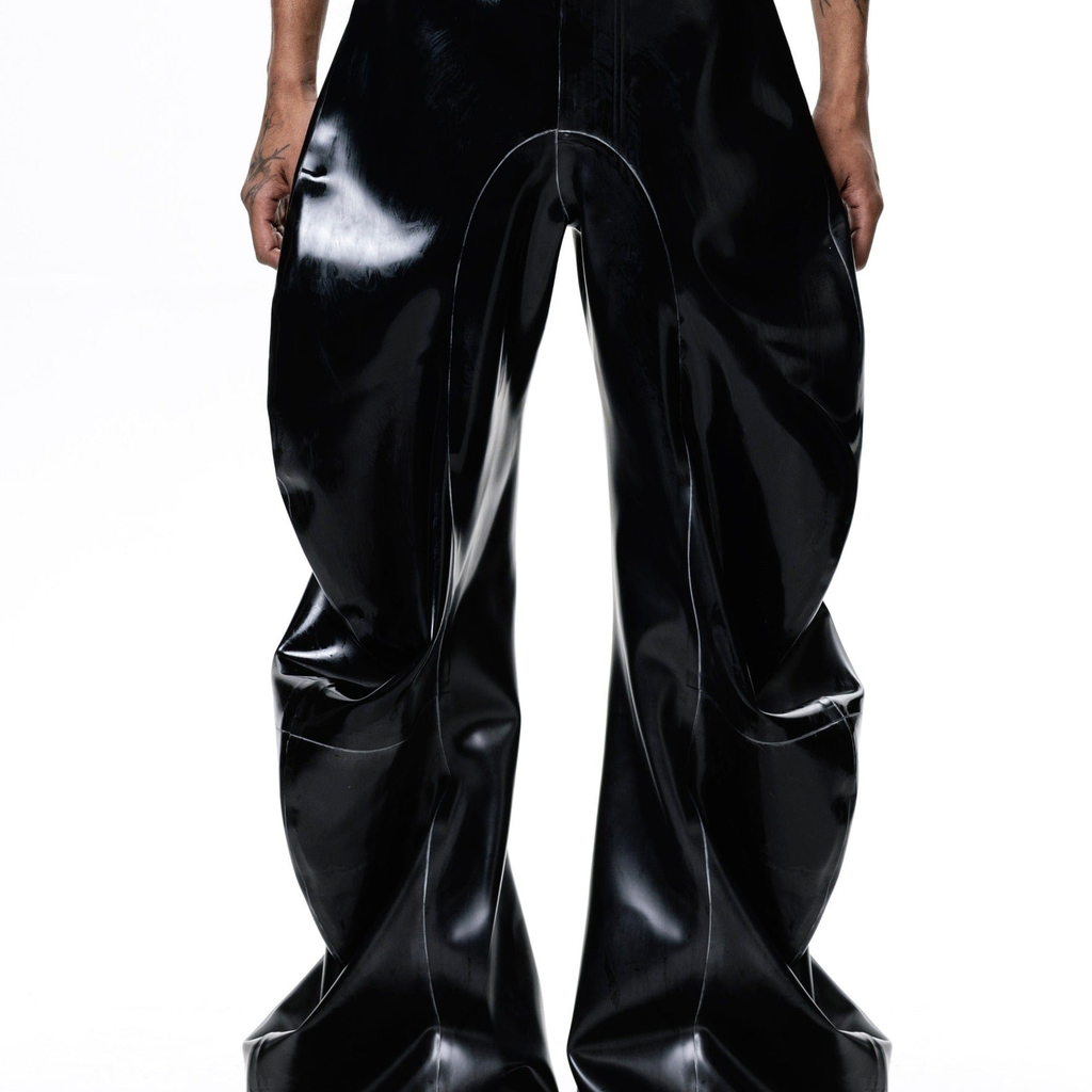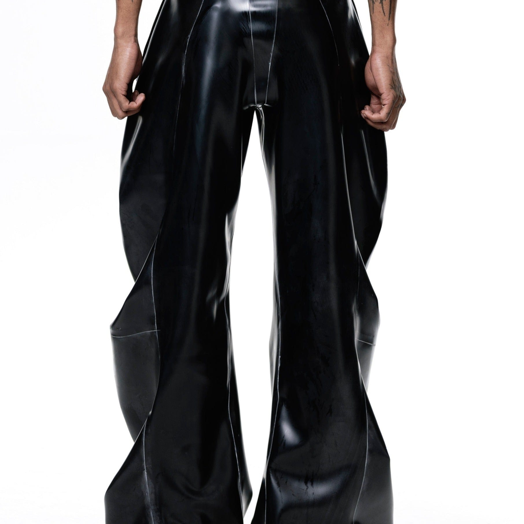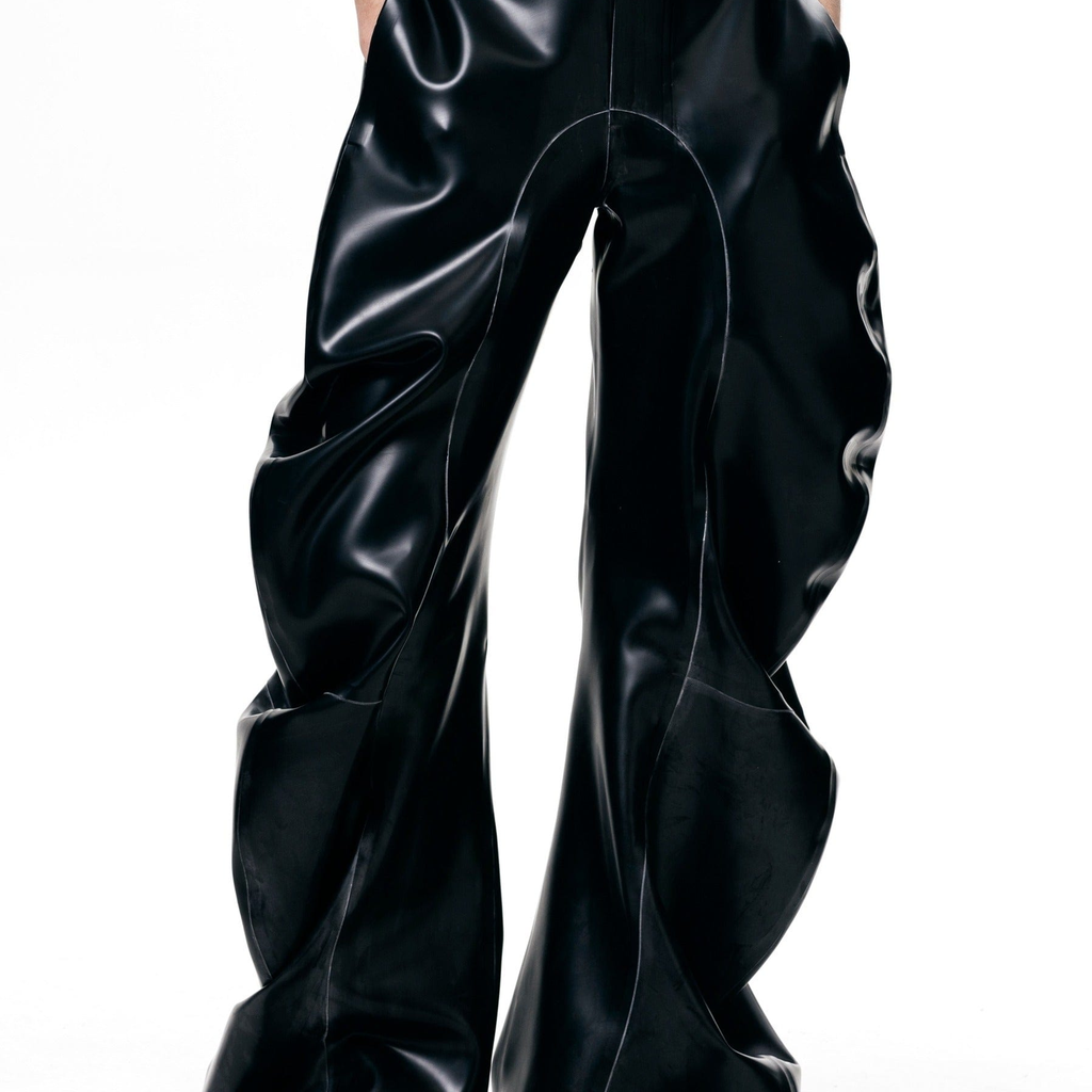 HARRI's Signature Latex Deflated Trousers, all hand-cut and hand-made that drapes perfectly, in the classic black. Relaxed fit.