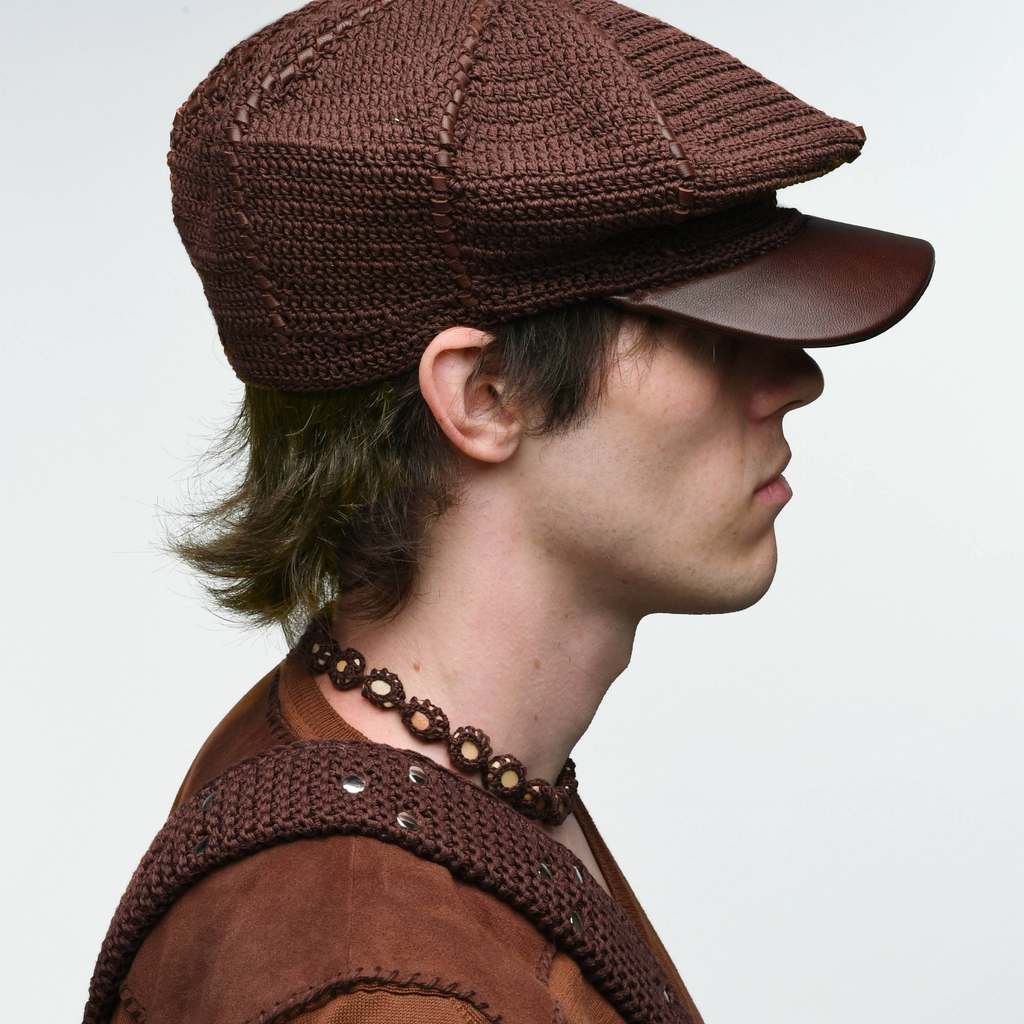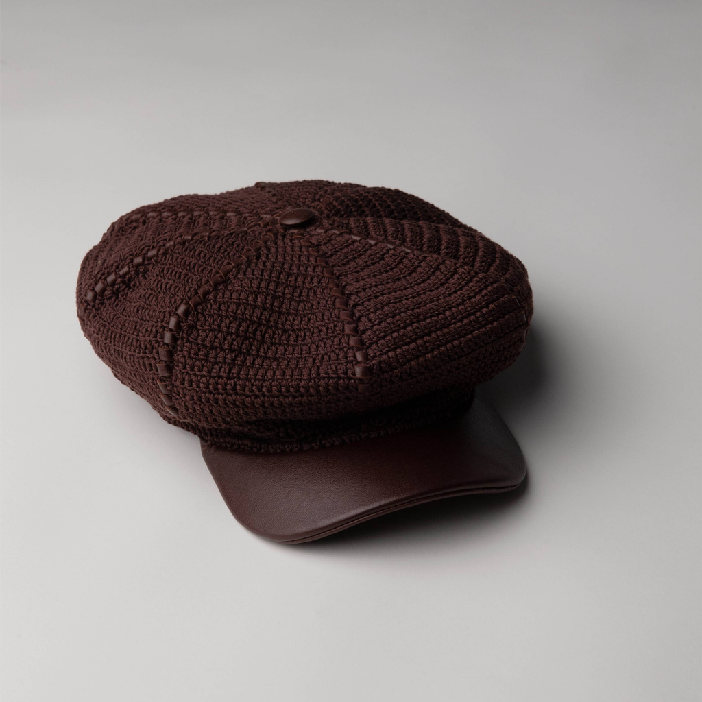 crochet flat cap brown/chalk
