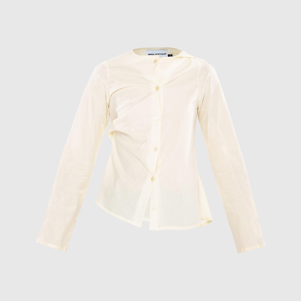 Long sleeve draped button-up shirt by Nensi Avetisian