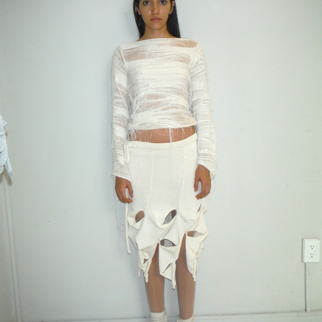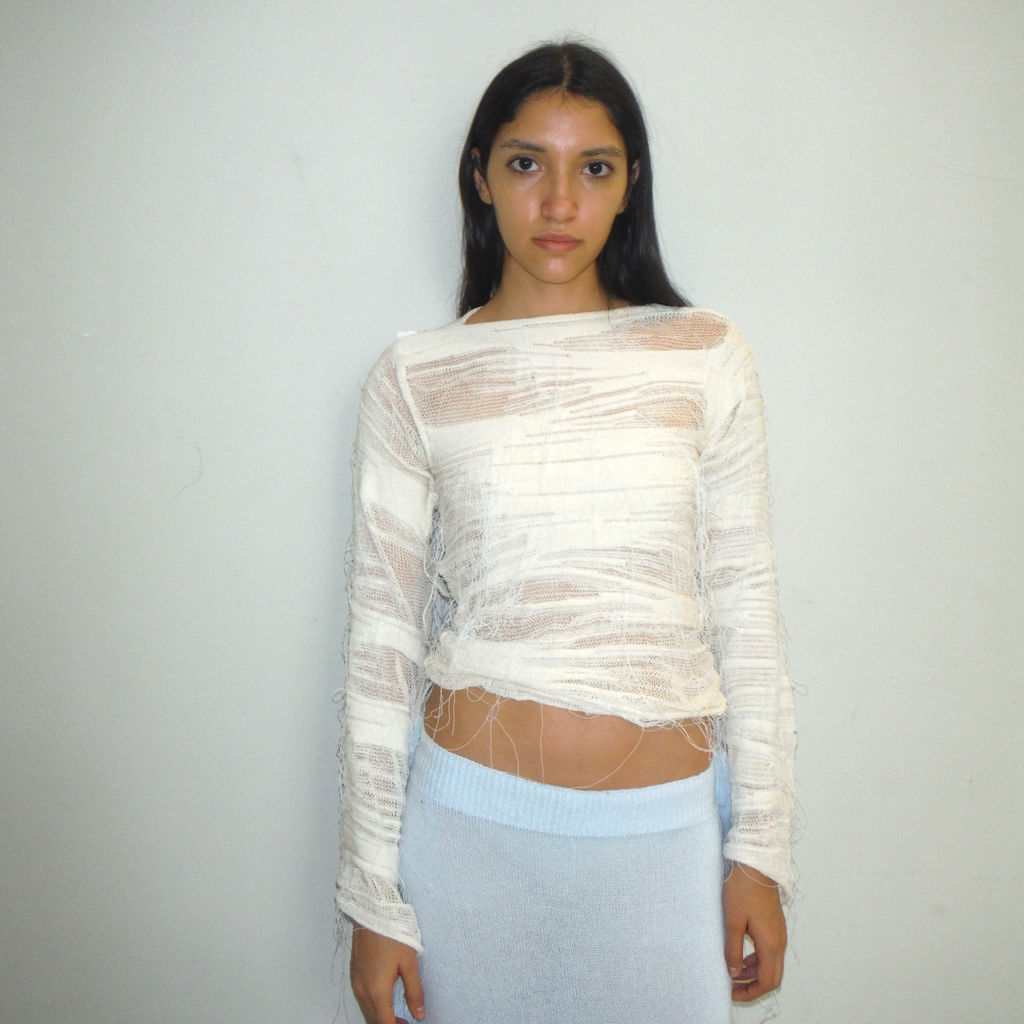 Whether it's visually inspired by her Puerto Rican roots or through a dynamic collaboration between designer and wearer, London-based Krystal Paniagua’s knitwear centres community. One-size-fits-most, her fluid and adaptable pieces mould themselves onto a wide range of body types.