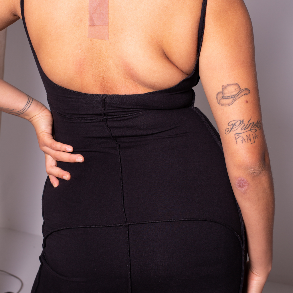 Panelled dress made with double layered Medium weight cotton jersey. Offers proper chest support with an empire seam waist.