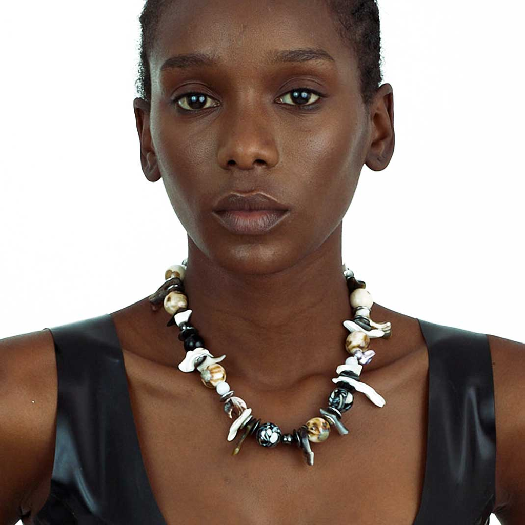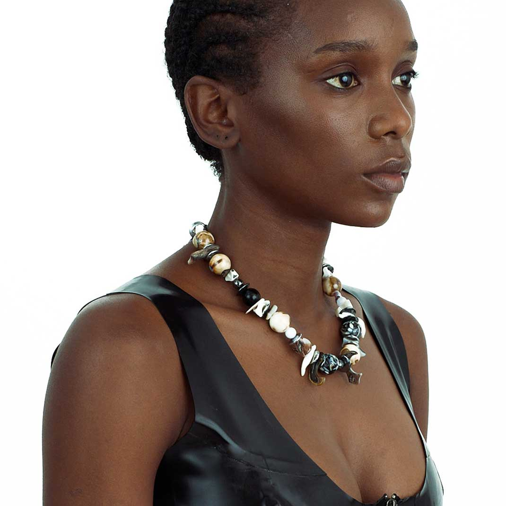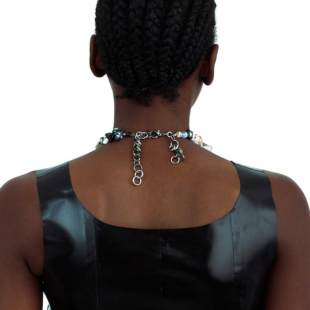 Jalaconda is a multidisciplinary artistic project, focused on the body. The LGBTQIA+ brand researches unconventional materials, such as latex, steel and natural Brazilian stones. They aim to discuss the place of manual work and personal adornment, knowing that clothes are fully political as they are from a country historically full of complexities.