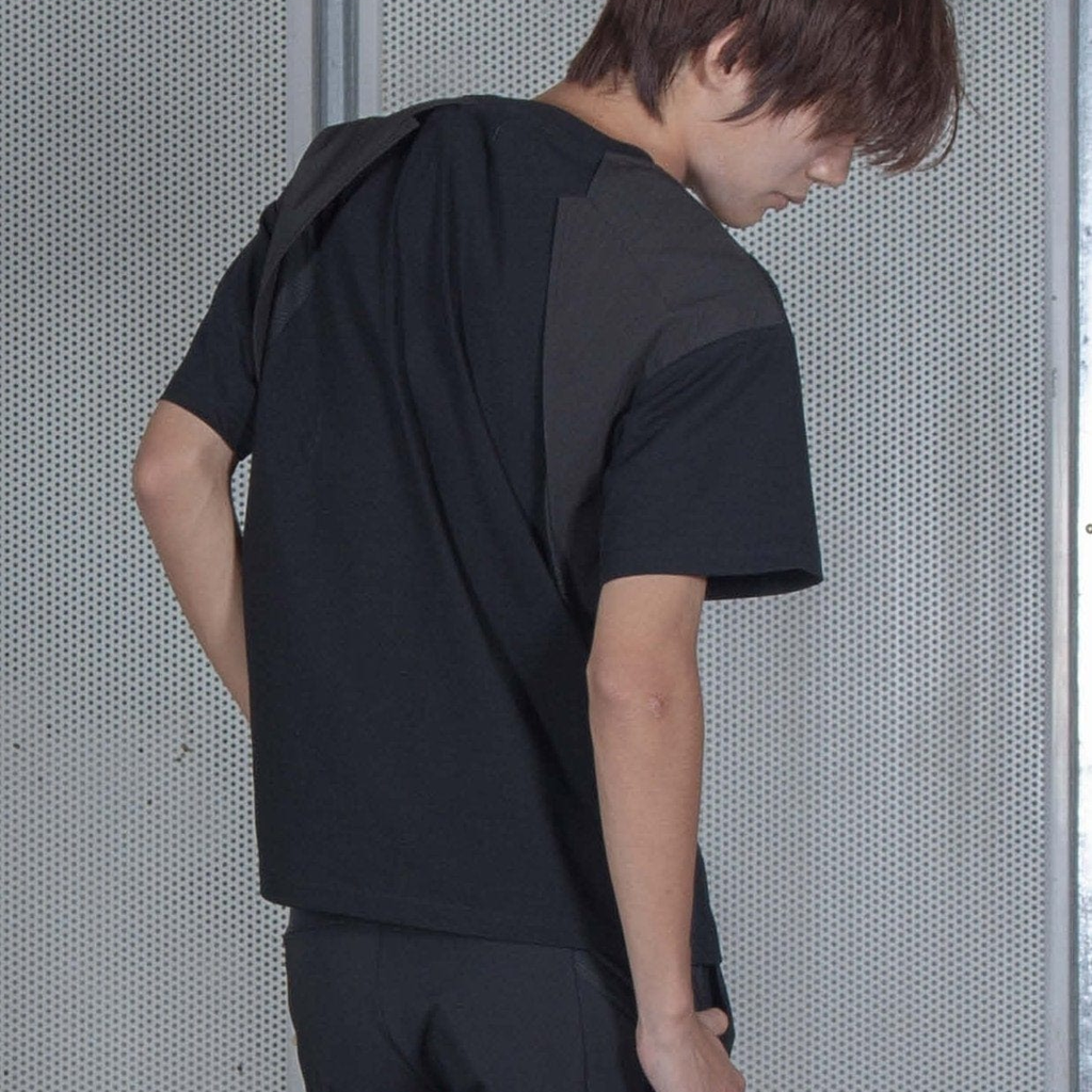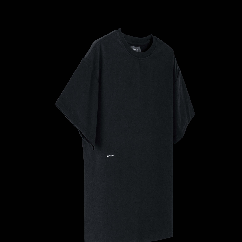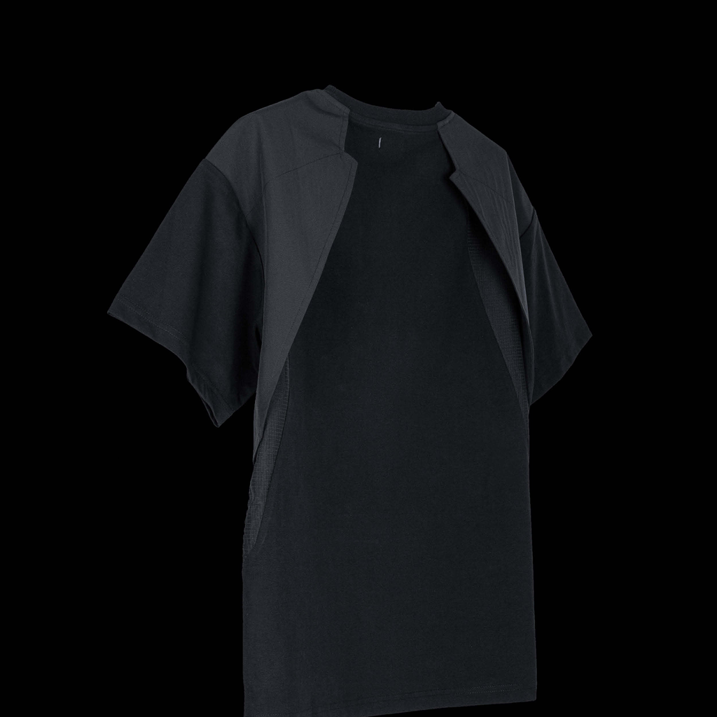 The black NOTINLIST LV.0 EXO T-SHIRT BLACK Y features a short sleeve design with ventilation panels for a cool and comfortable fit. Made of Bio-based and Breathable SORONA® materials, this T-shirt also has a rib knit crewneck and an Exo shoulder panel at the back. The front showcases a printed logo, while the back has breathable mesh ventilation underneath. Normal slim fit.