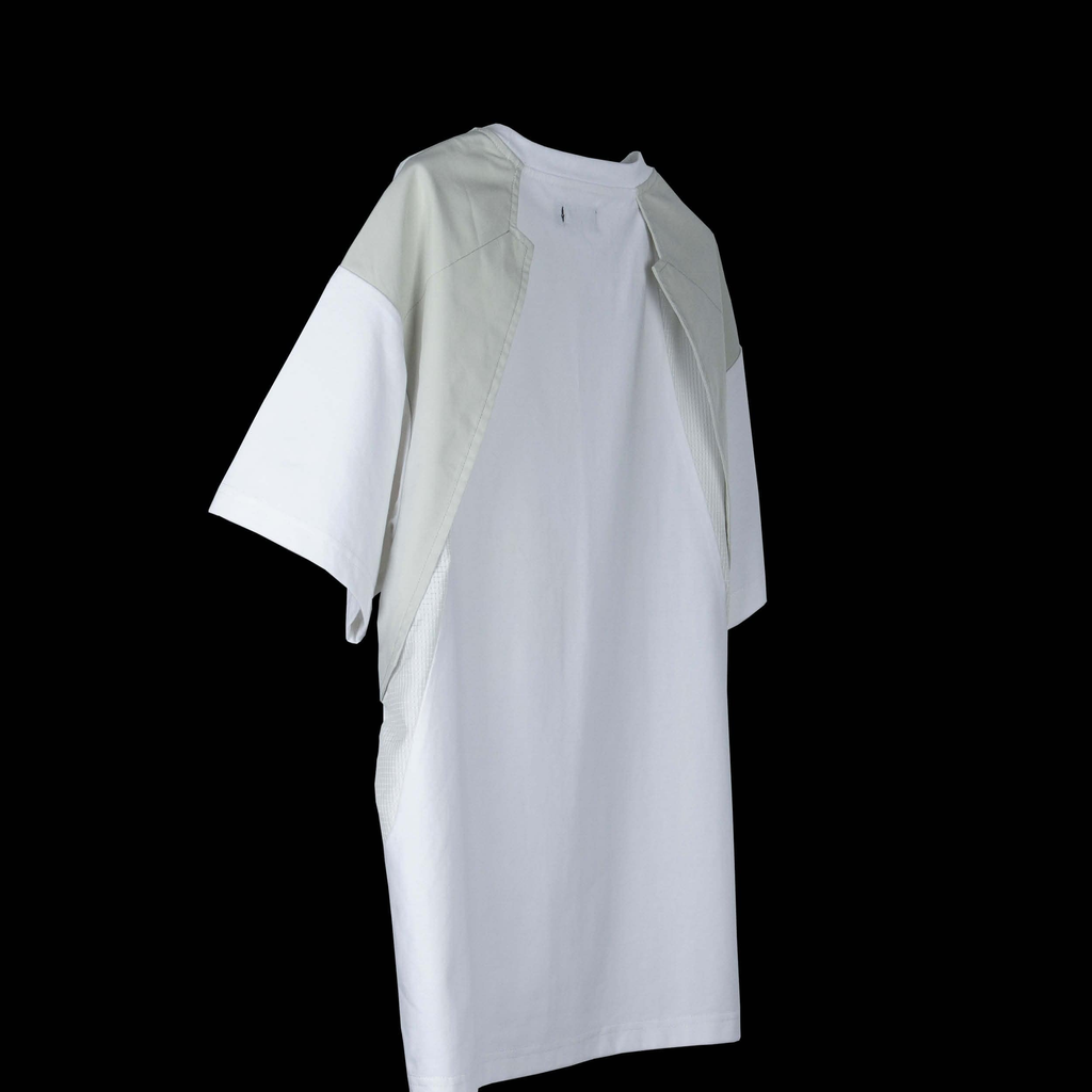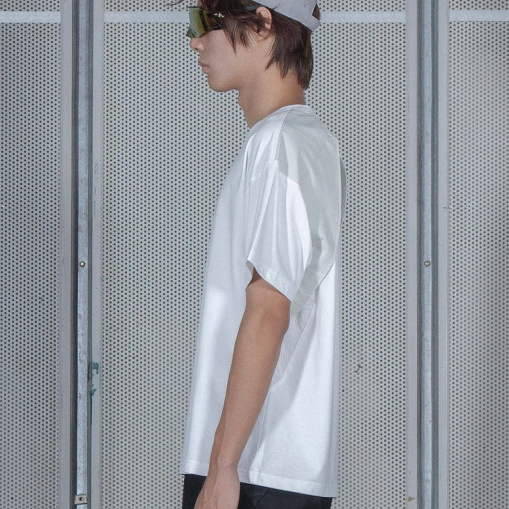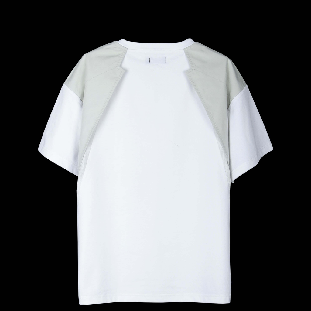 The white LV.0 EXO T-SHIRT WHITE Y by NOTINLIST features short sleeve ventilation panels. Made with bio-based and breathable SORONA® materials, this T-shirt provides a cool feeling. The rib knit crewneck and exo shoulder panel at the back give it a stylish touch. The front showcases a printed logo, while the back panel features breathable mesh ventilation. Normal slim fit.