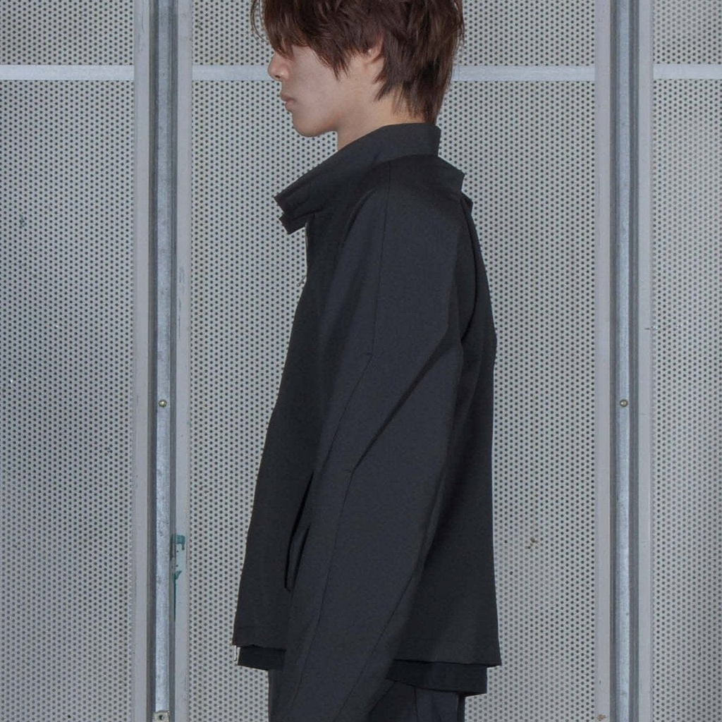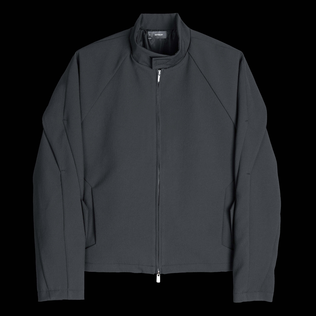The black LV.0 OPERATOR JACKET X by NOTINLIST features a Harrington-style stand collar and a YKK EXCELLA® 2-ways zipper at the front. Its 3D raglan sleeve pattern and velcro fastening collar provide functionality and style. With 2 front pockets and 2 inner chest pockets, this jacket offers ample storage space. Normal slim fit.