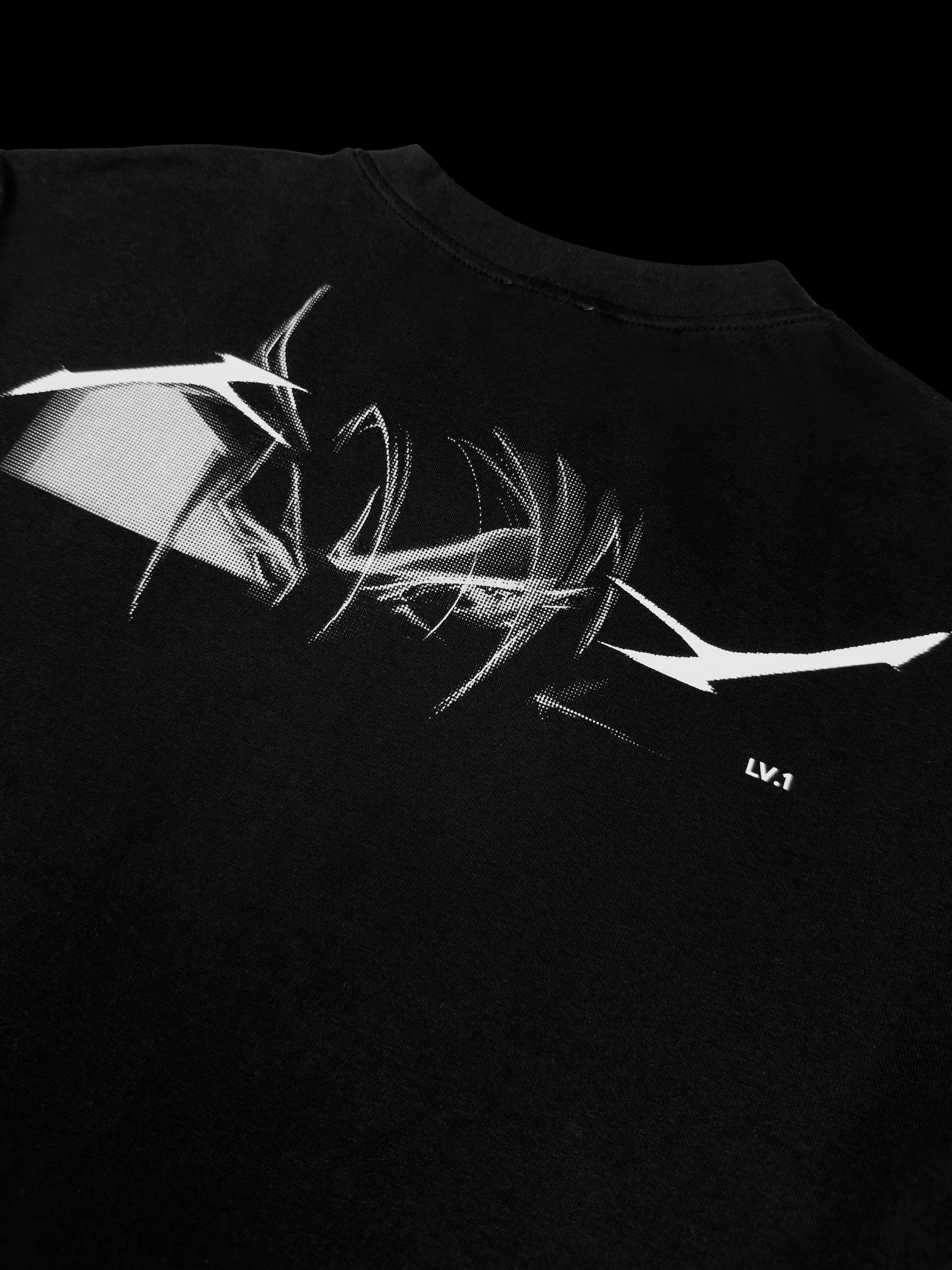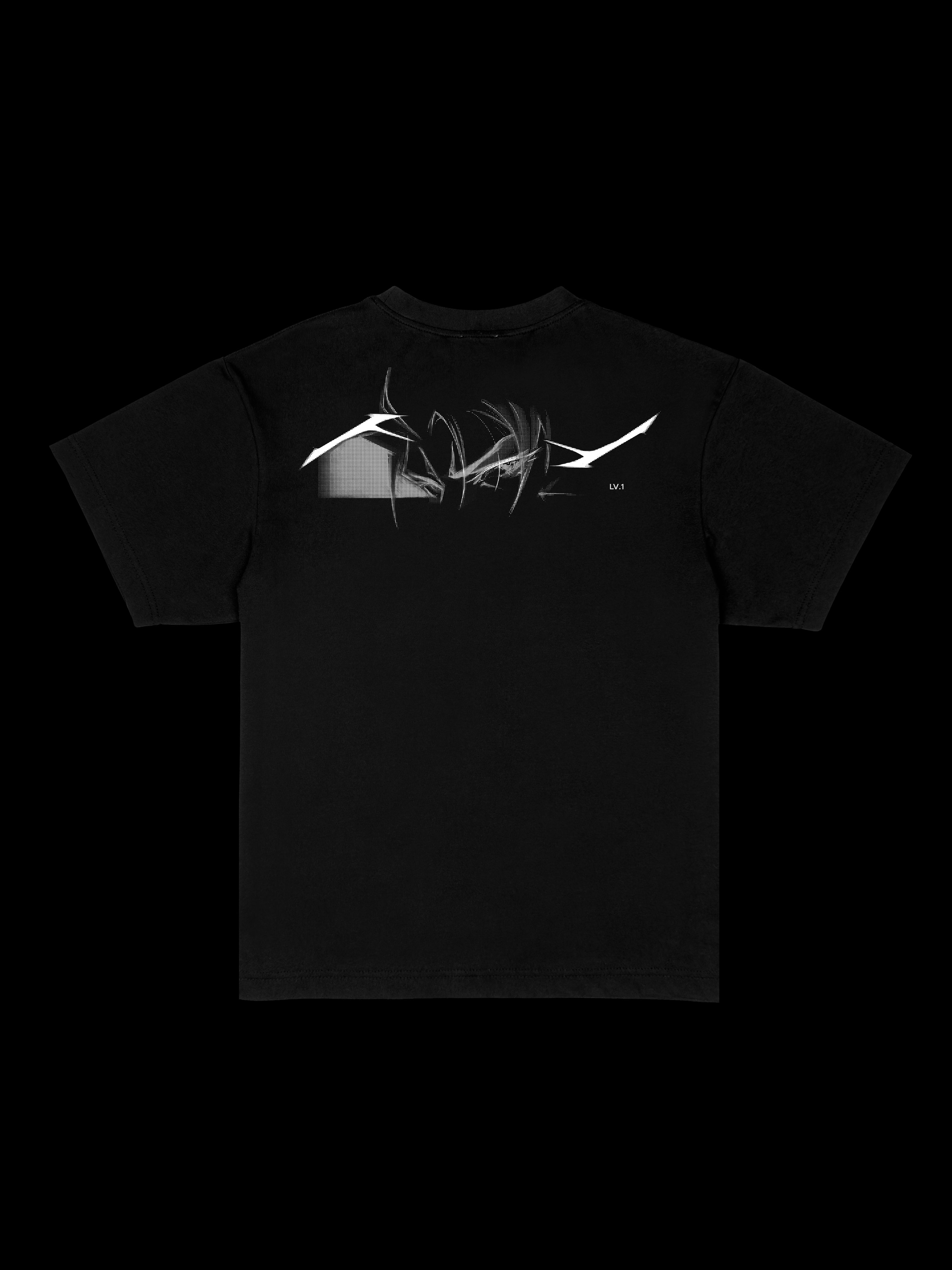 A gaming-inspired graphic tee titled "sketch 1" crafted from sorona® breathable cotton. Features a hextor print on the back and his blade artwork on the front. designed as part of the notinlist gaming merch lineup, balancing comfort and narrative detail.